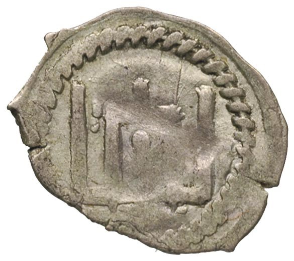 LITWA, Witold 1392-1430, pieniądz litewski (denar) wybity po 1401 r., Aw: Grot włóczni z krzyżykiem, Rw: Kolumny Gedymina, srebro 0.42 g