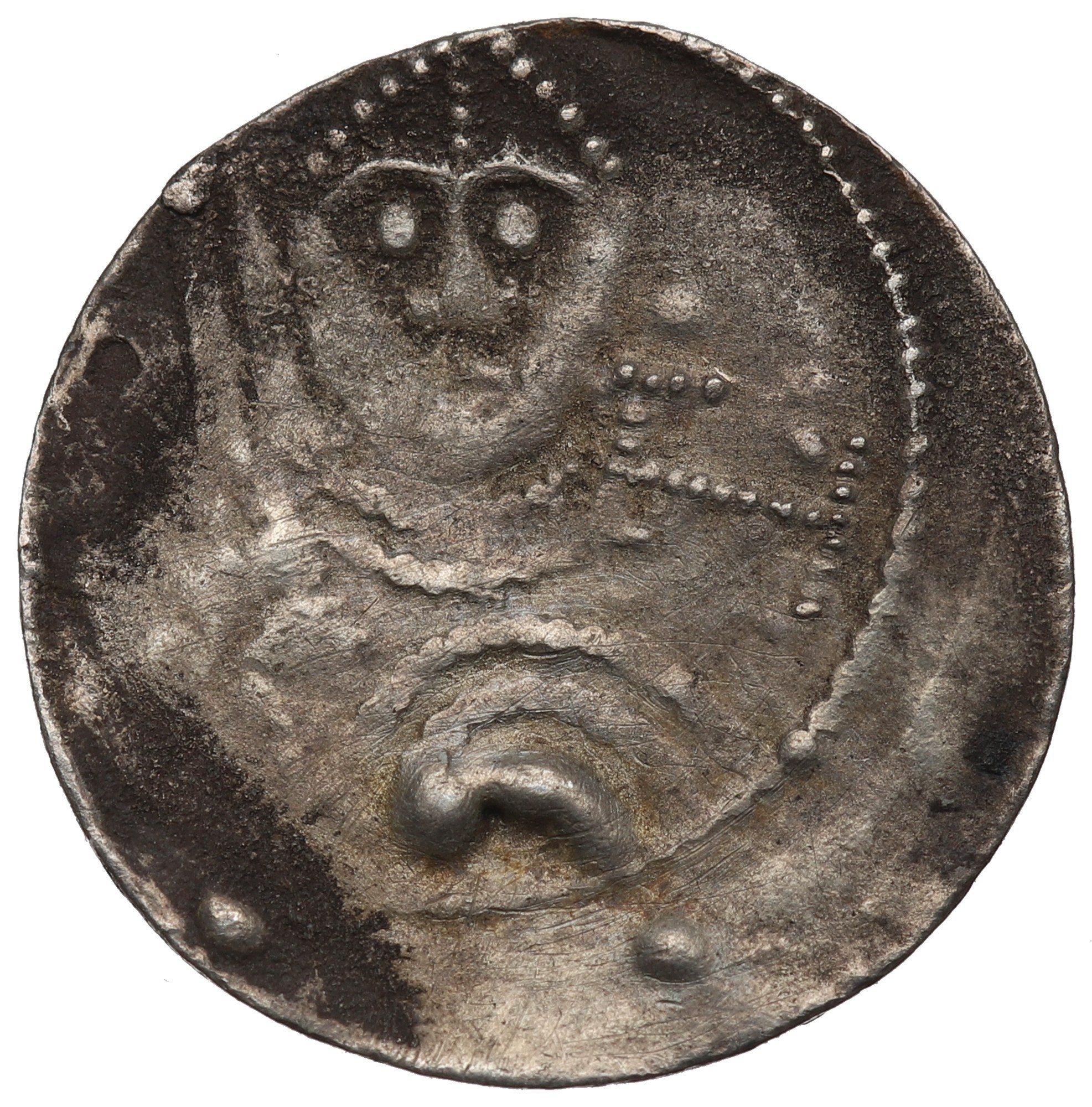 Awers: Półpostać księcia trzymającego miecz i tarczę na wprost, w polu litery O i leżąca T.