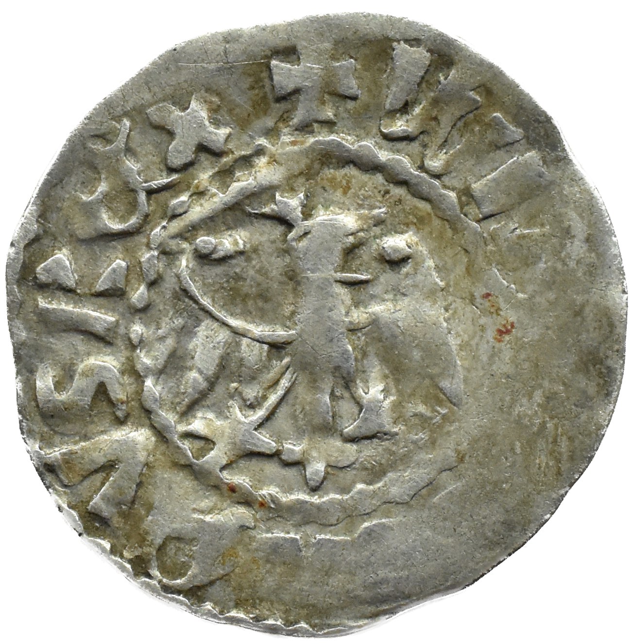 rewers: ukoronowany Orzeł z dziobem skierowanym w prawą stronę, otoczony otokiem perełkowym i WLADISLAVS REX