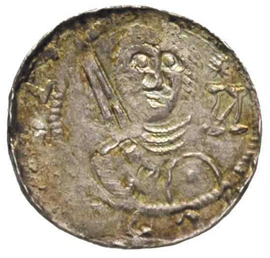 POLSKA, Władysław Wygnaniec 1138-1146, denar, Aw: Popiersie rycerza na wprost z mieczem w prawej i tarczą w lewej ręce, w polu litera N i gwiazdka, Rw: Popiersie biskupa na wprost, w prawej ręce pastorał, w lewej księga, srebro 0.50 g, Stronczyński 42