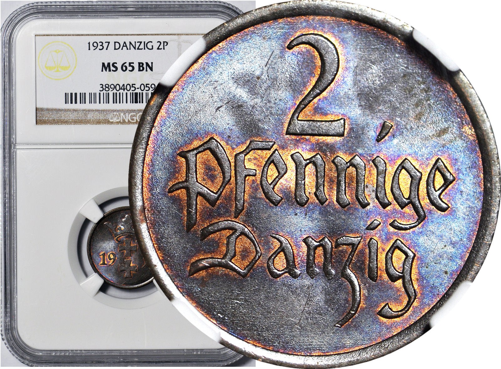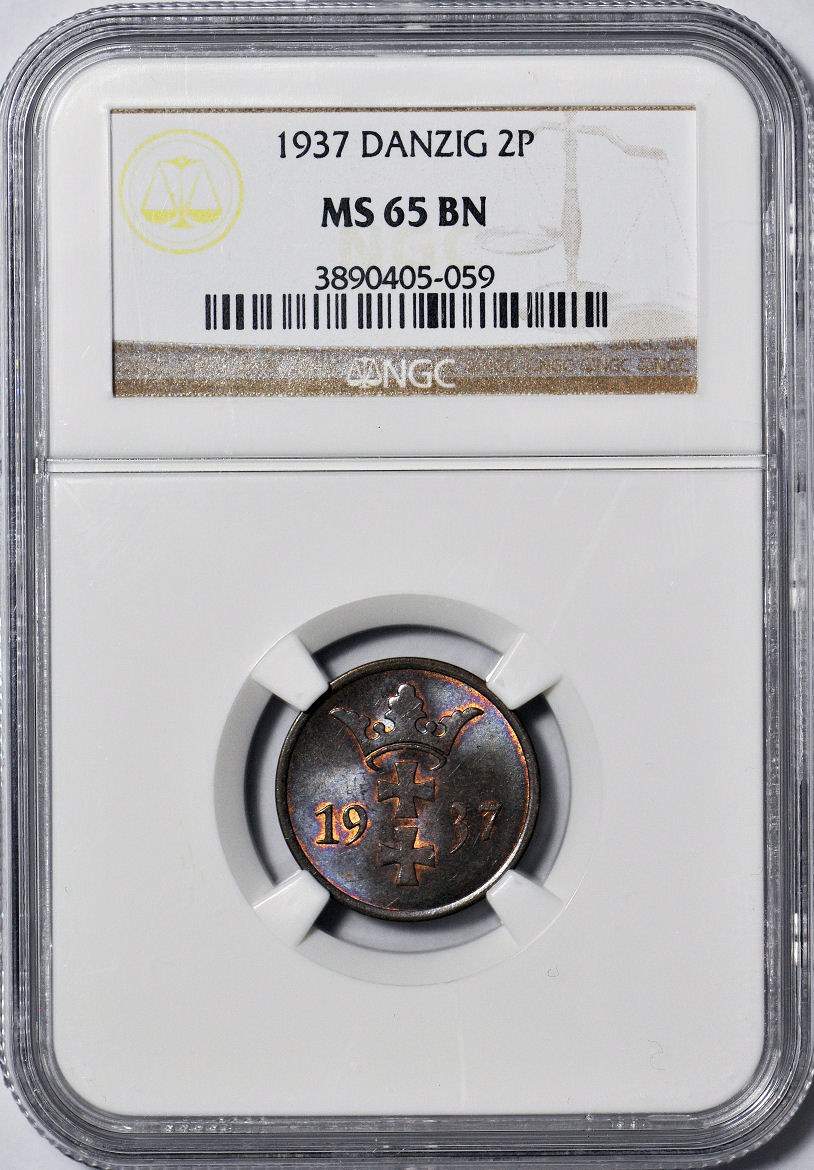Druga najwyższa nota gradingowa na świecie patrząc zarówno na NGC jak i PCGS i tylko jeden egzemplarz wygradowany wyżej. Wyśmienity menniczy egzemplarz, mocny połysk, wspaniałe detale, brązowy kolor. Egzemplarz o wspaniałej prezencji do najlepszych kolekcji.