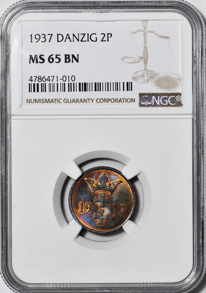 WMG, 2 fenigi 1937, mennicze, kolor BN