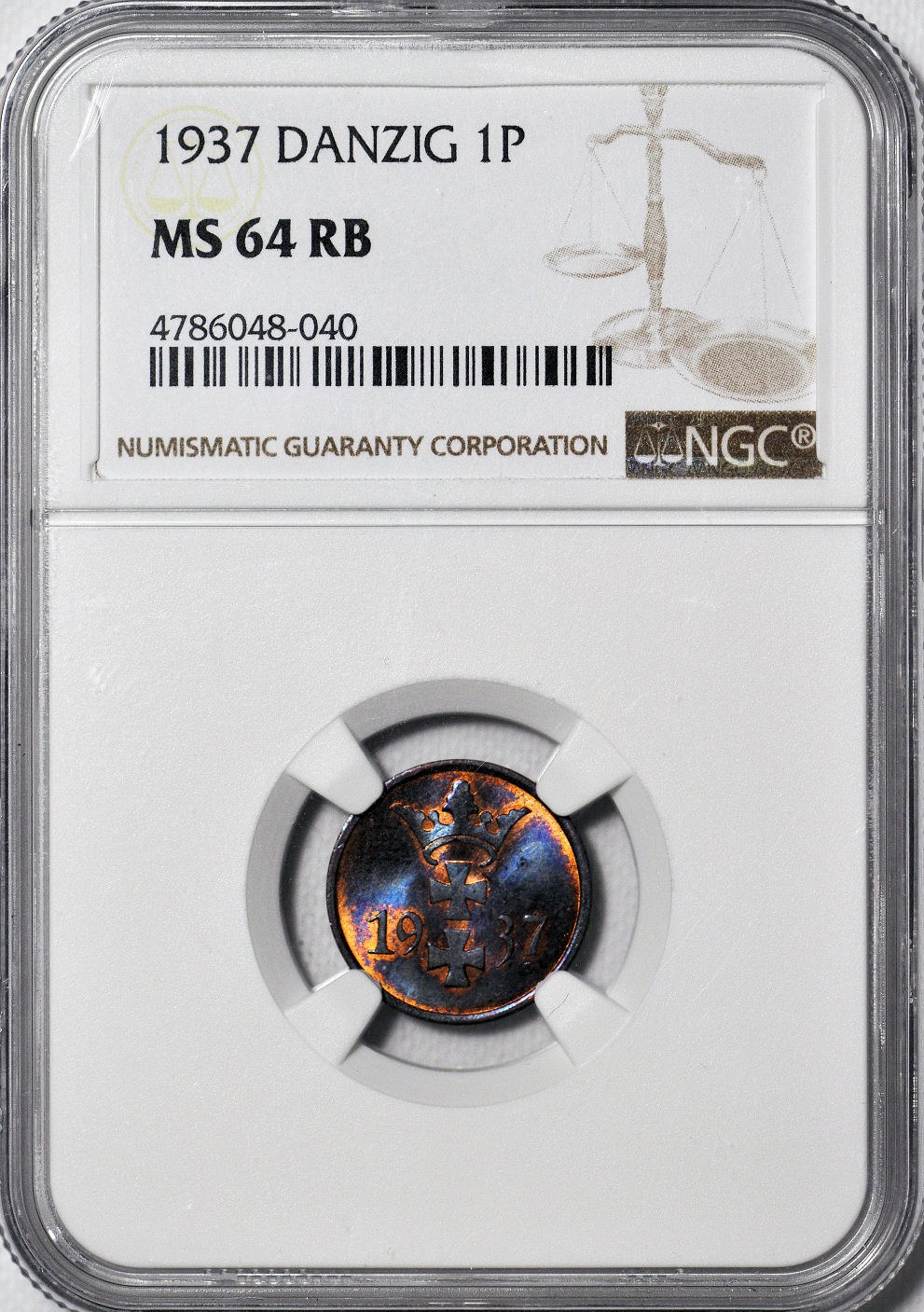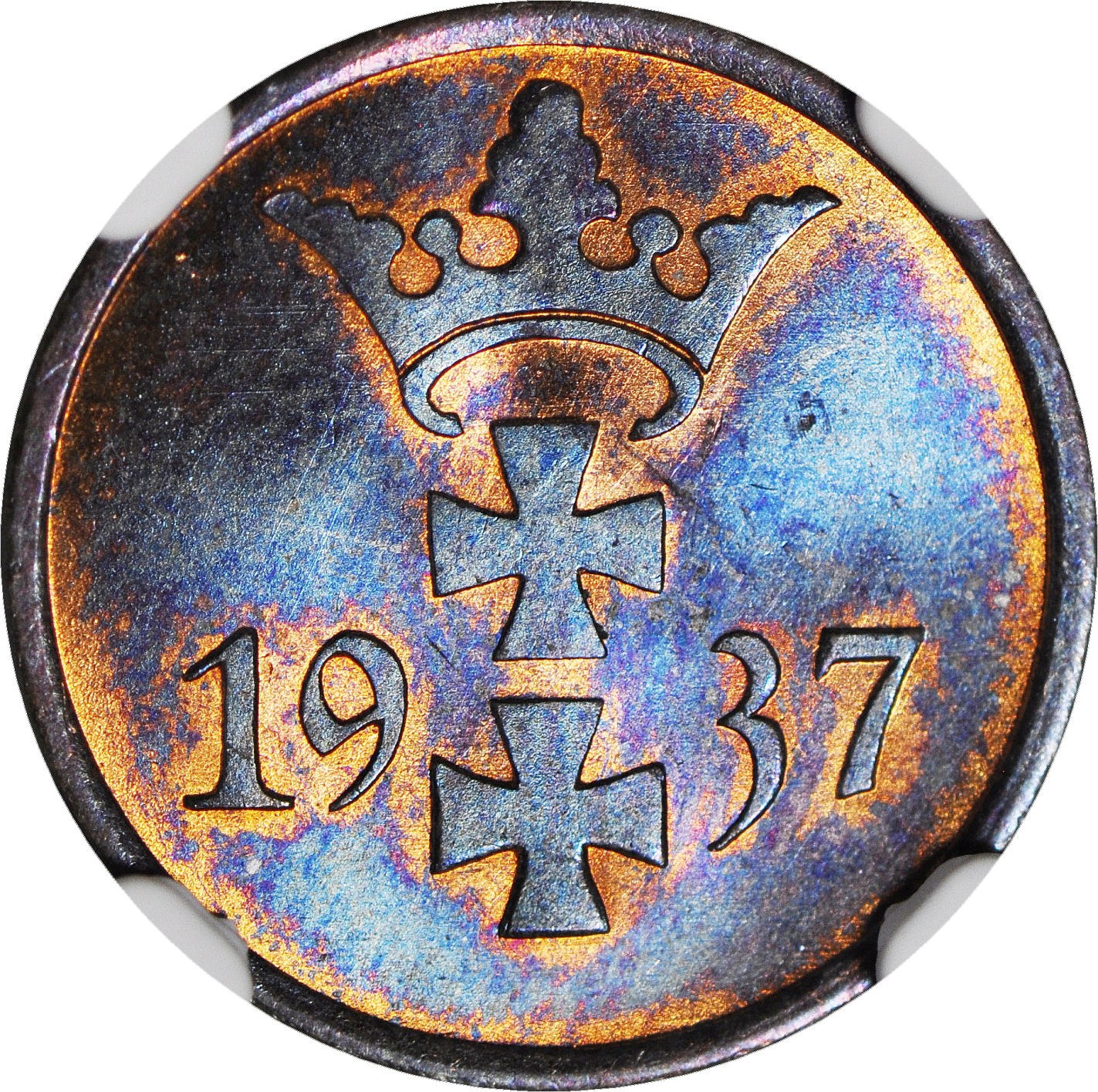 Wolne Miasto Gdańsk, 1 fenig 1937, menniczy, kolor BN