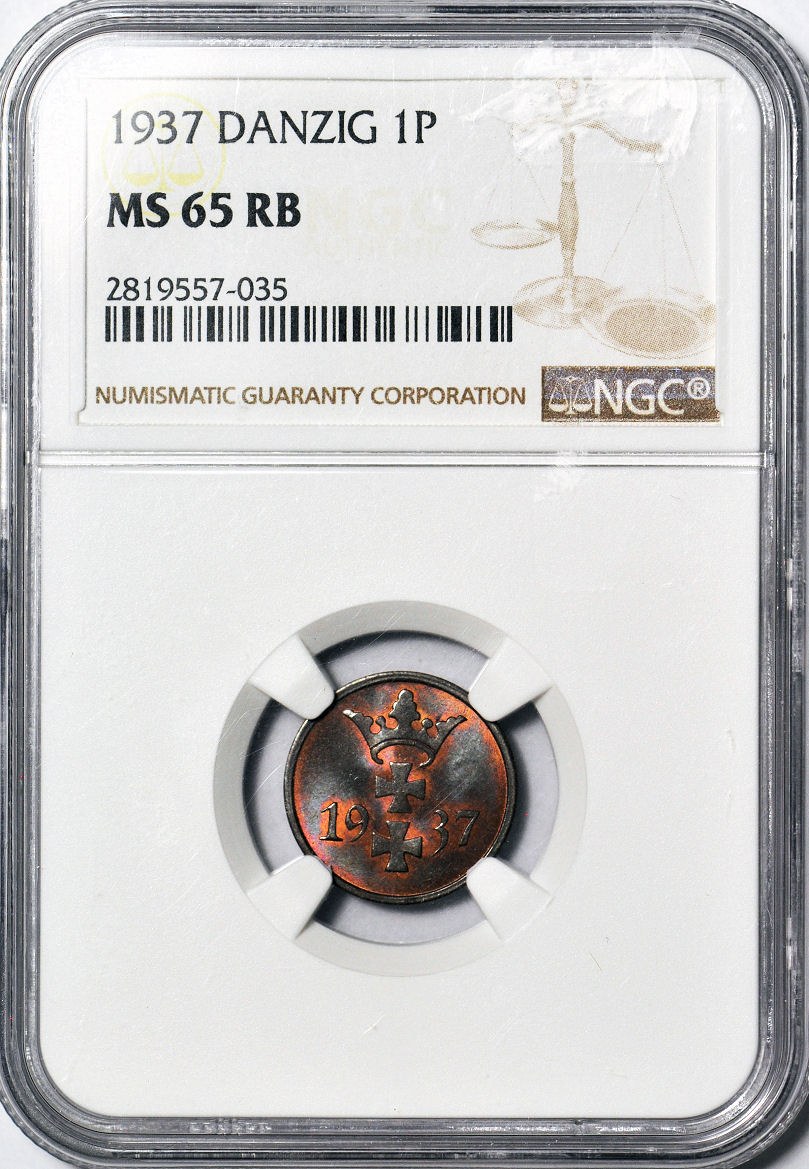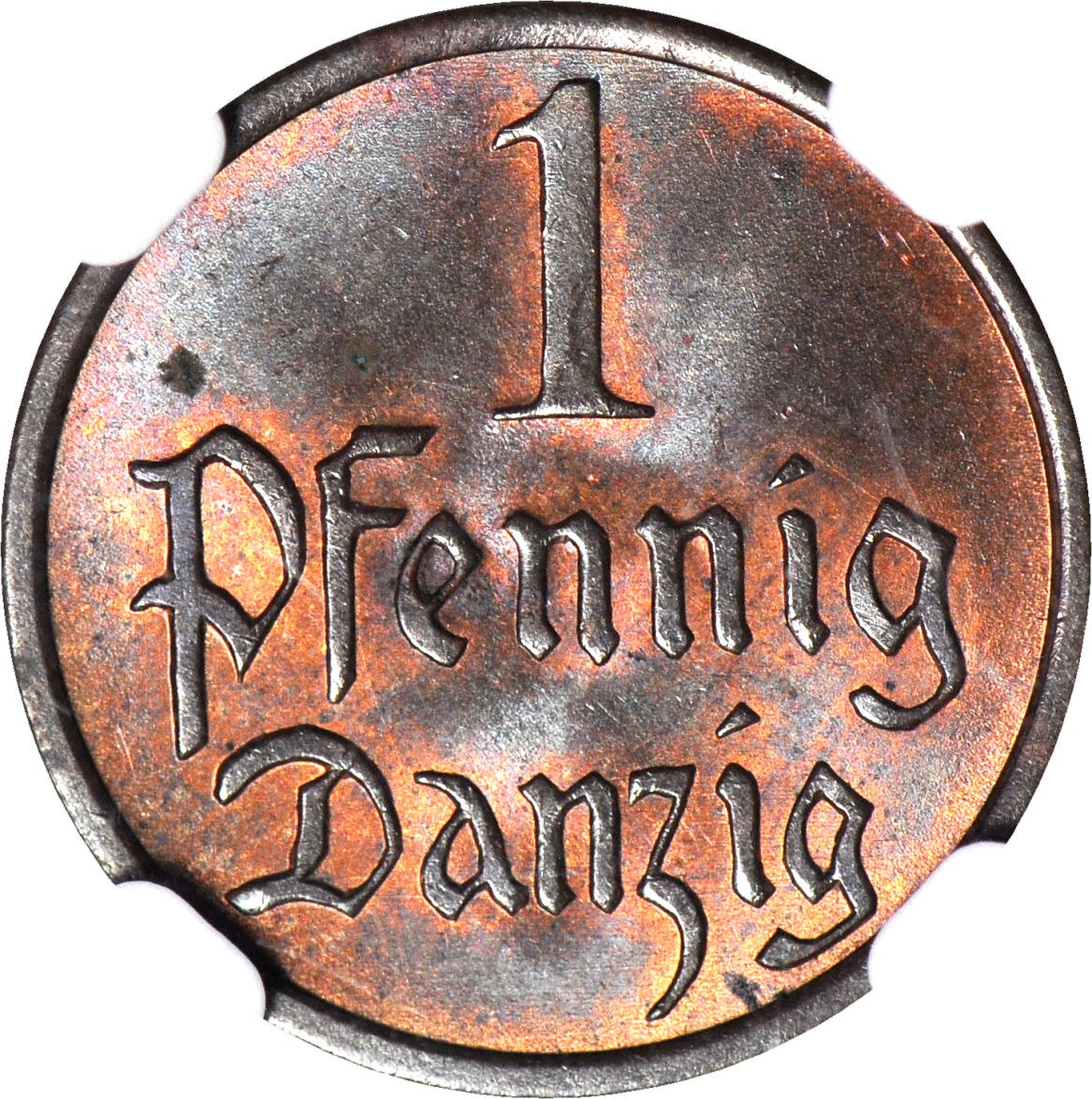 Wolne Miasto Gdańsk, 1 fenig 1937, menniczy, kolor RB
