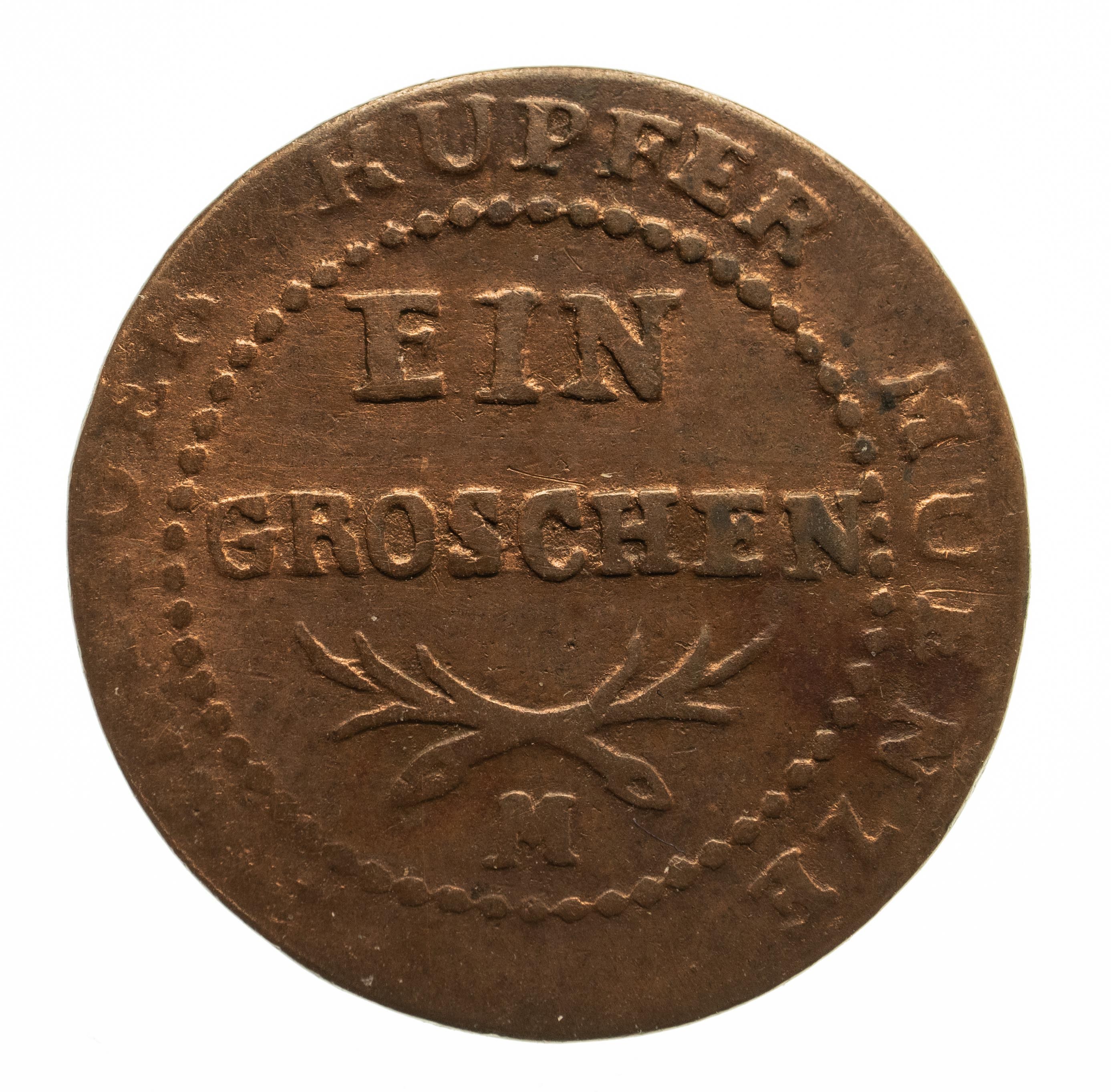 Moneta centrycznie wybita, w naturalnej patynie miedzi.
