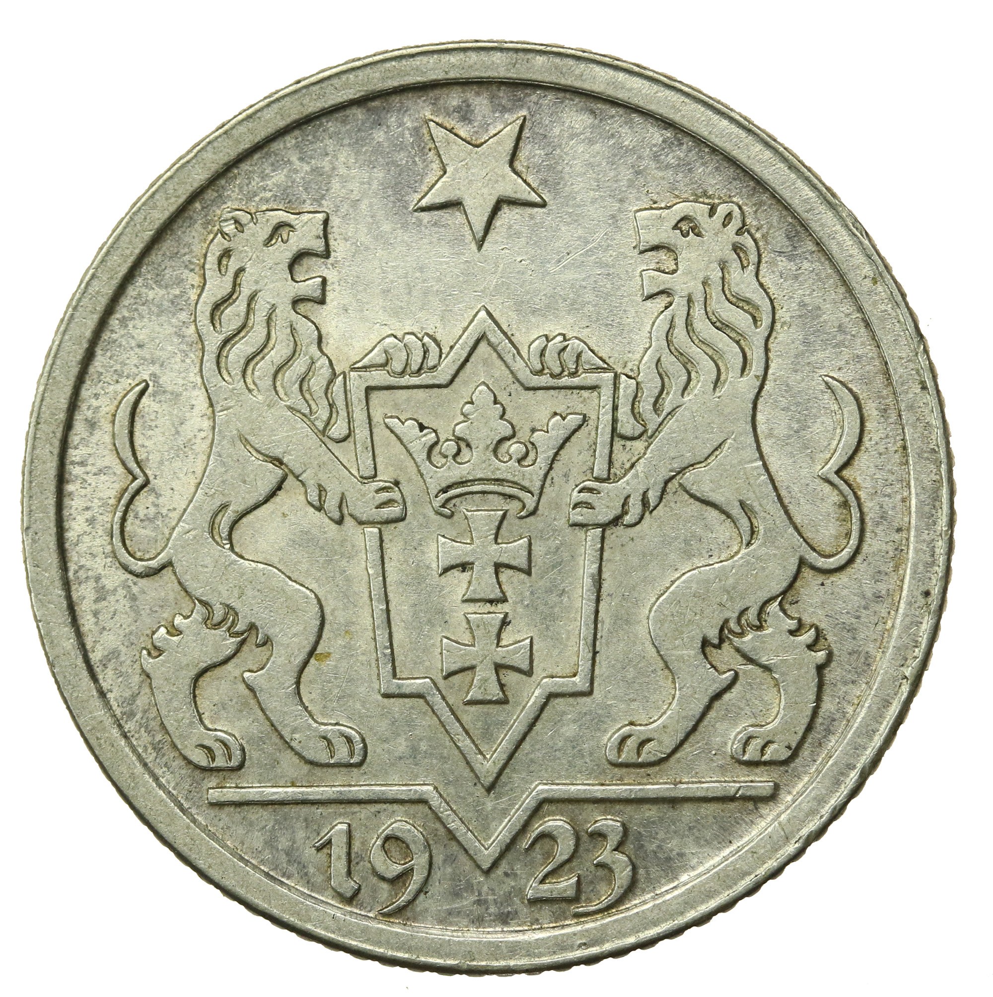 Wolne Miasto Gdańsk, 1 gulden 1923 Koga. Stan zachowania 2. Dobrze zachowana moneta z połyskiem. Literatura: Kopicki 7841 (R1), Fischer WMG011, Parchimowicz 61