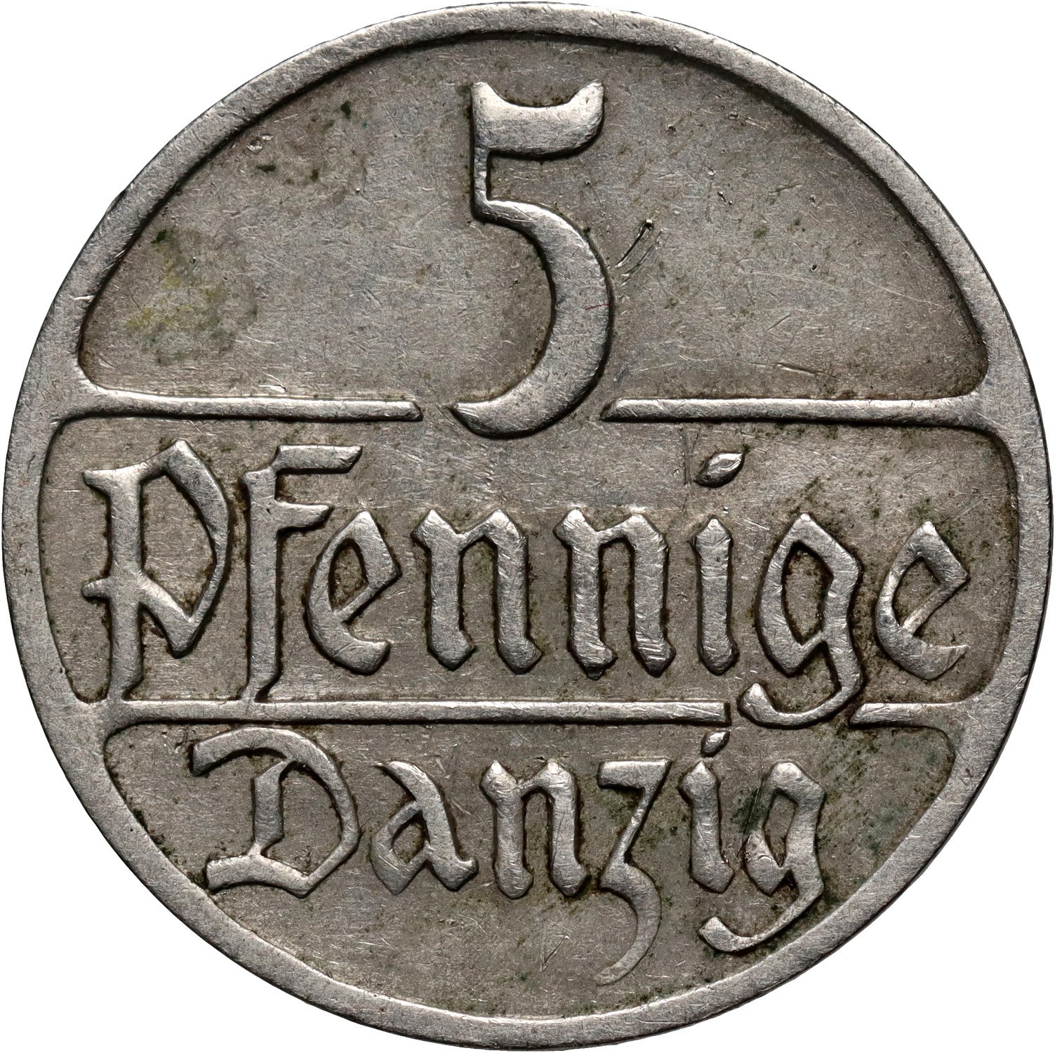 Wolne Miasto Gdańsk, 5 fenigów 1928, Berlin, rzadki rocznik