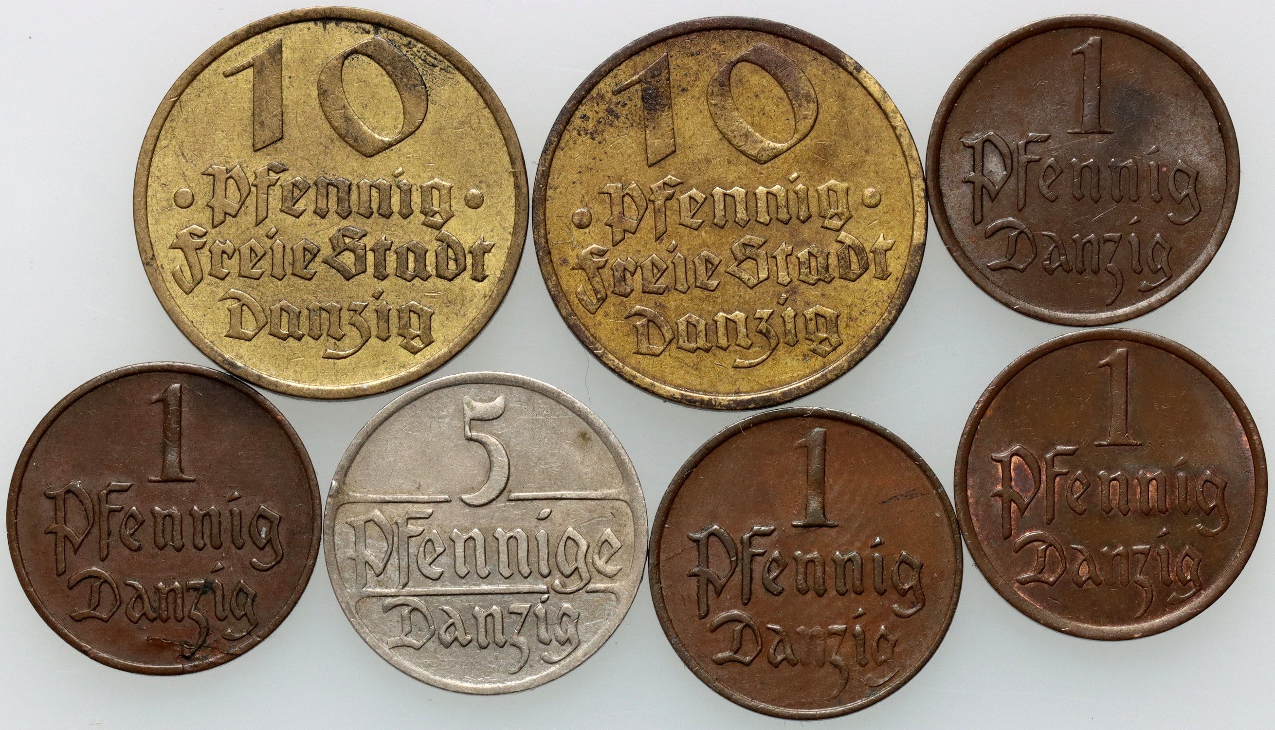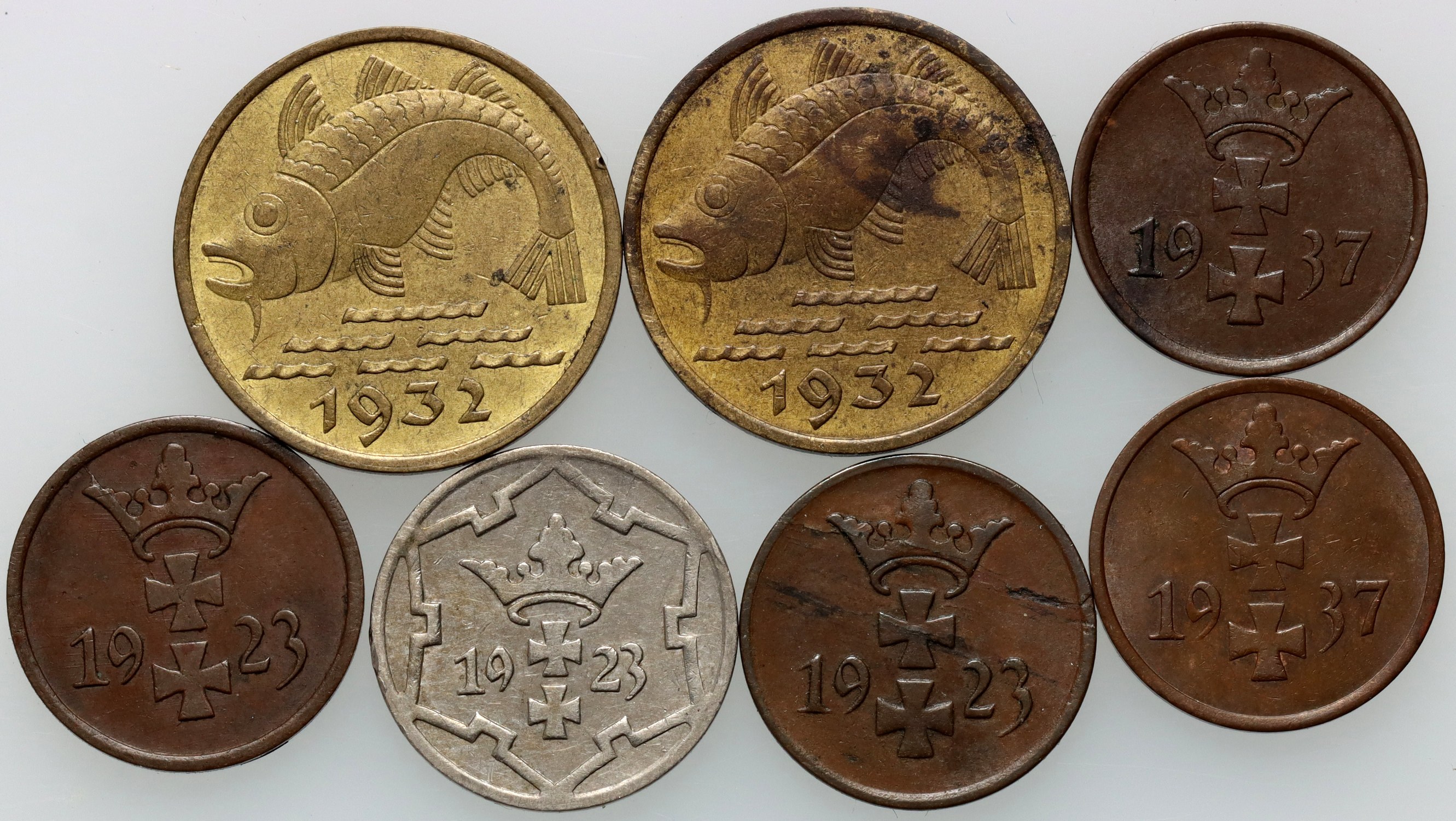Wolne Miasto Gdańsk, zestaw monet z lat 1923-1937, (7 sztuk)