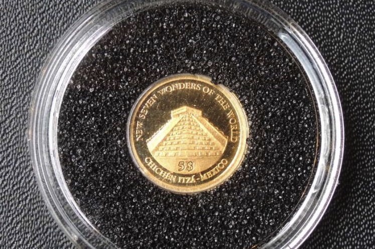 Złota moneta 5 Dolarów, 2011 r. - Chichen Itza - Nowe Siedem Cudów Świata - Najmniejsze Złote Monety Świata + certyfikat - Wyspy Salomona.