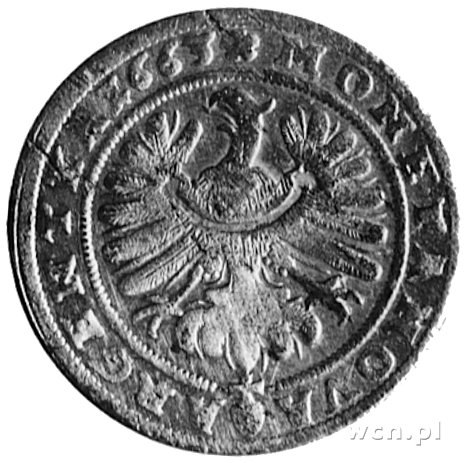 XV krajcarów 1663, Brzeg, Aw: Popiersie i napis, Rw: Or...