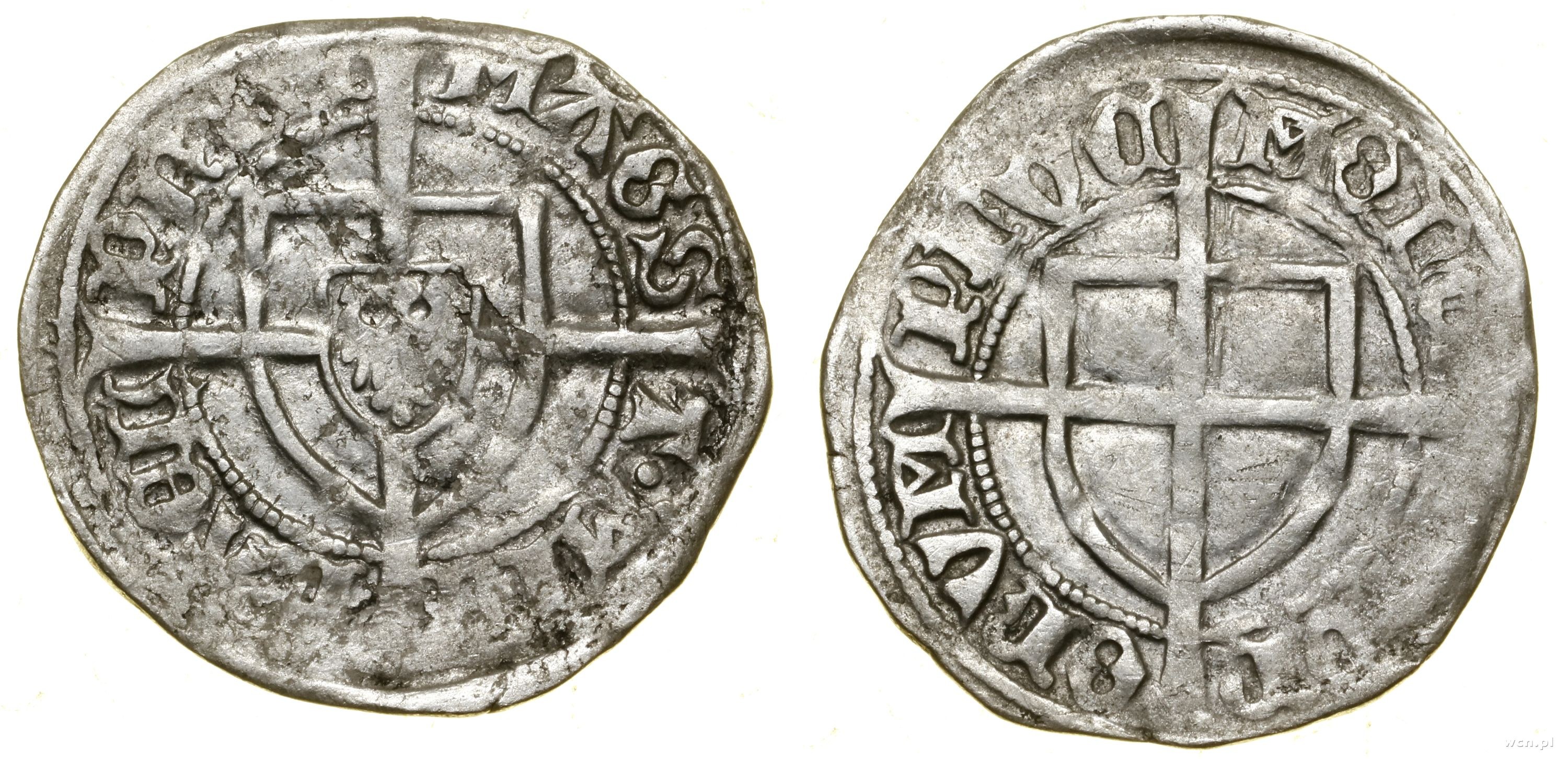Aw: Tarcza Ziem Pruskich na tle długiego krzyża, MΛGS T•MIC HΛEL PRIM; Rw: Tarcza zakonna na tle długiego krzyża, MONE TΛ\DN ORVM PRVC