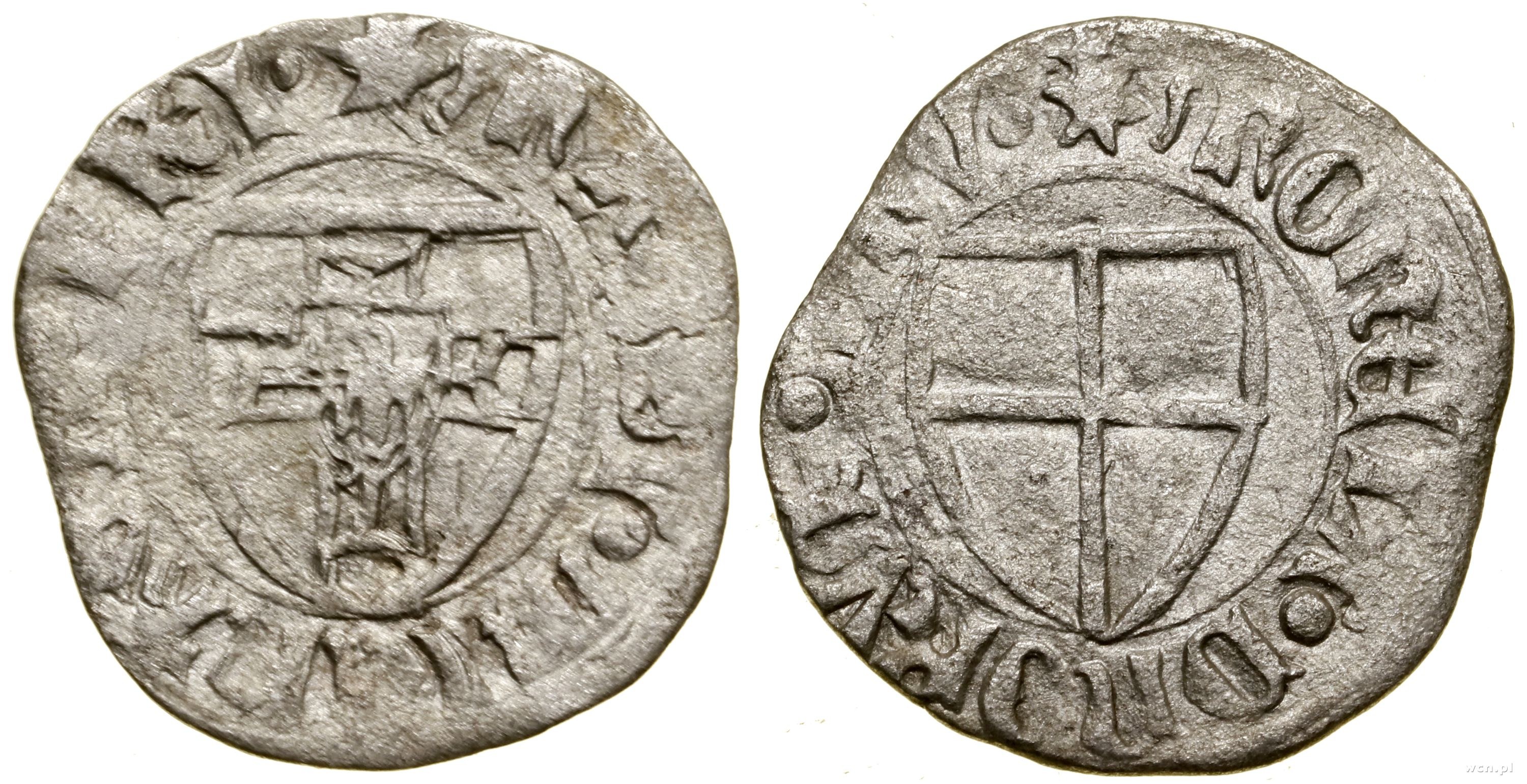Aw: Tarcza Wielkiego Mistrza, ✶ MAGST • MIChAEL • PRI •, Rw: Tarcza zakonna, ✶ MONETA • DNORVM • PRV •