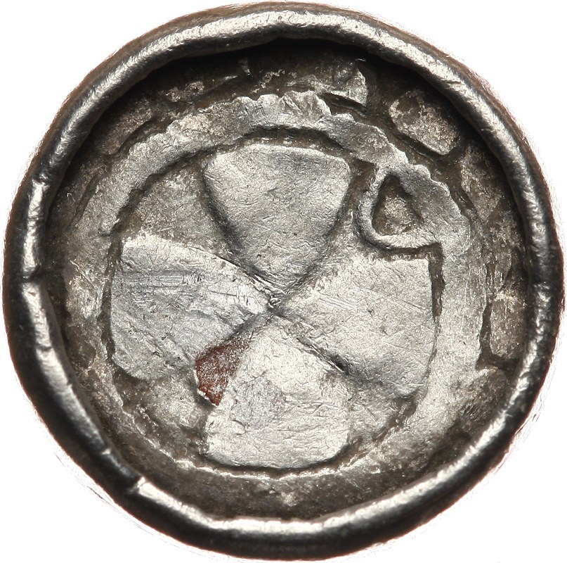Polska, Zbigniew (najstarszy syn Władysława Hermana), denar krzyżowy, Aw: Krzyż prosty, w polach kulki, Rw: Krzyż kawalerski, moneta przypisywana najstarszemu synowi Władysława Hermana oraz bratu Bolesława Krzywoustego, Zbigniewowi. Srebro 0.90 g, śr 11mm
