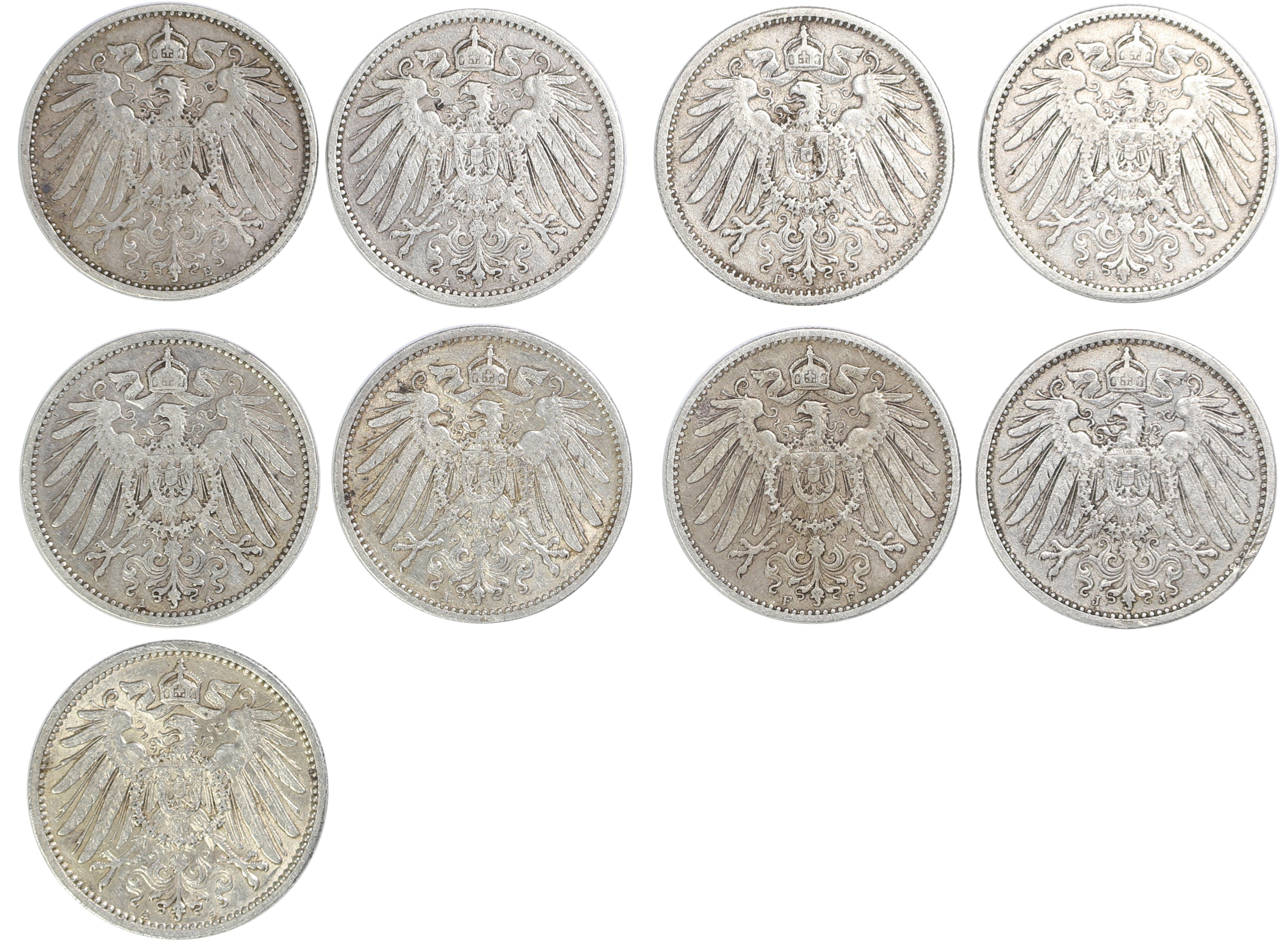 Zestaw 8 szt. 1 marka Deutsches Reich