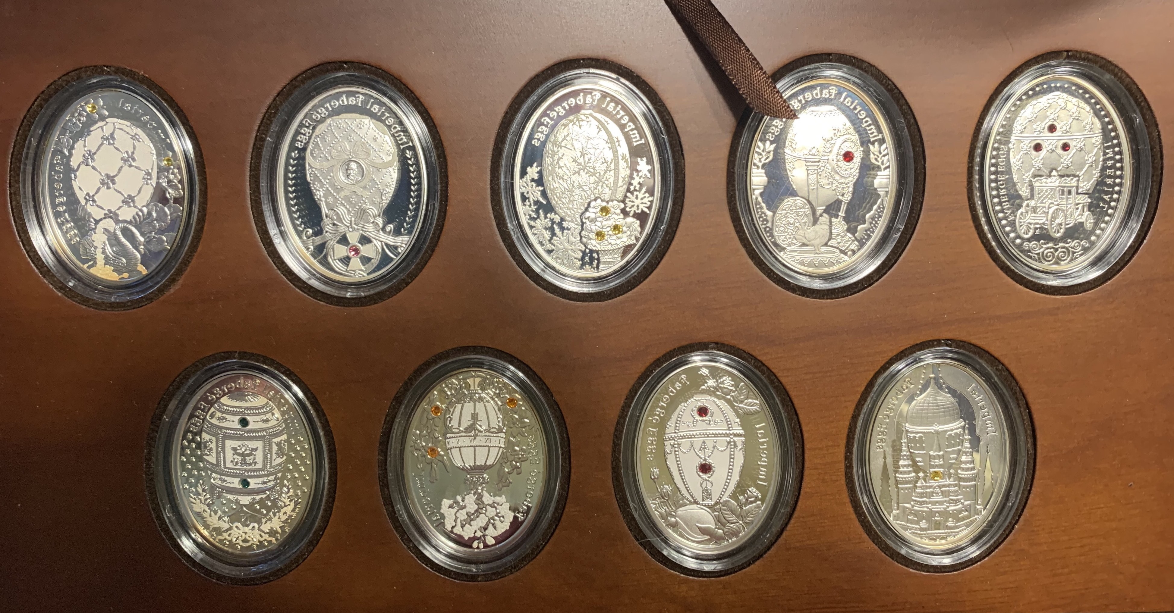 Zestaw 9 srebrnych monet, 1 dolar, seria Jaja Faberge