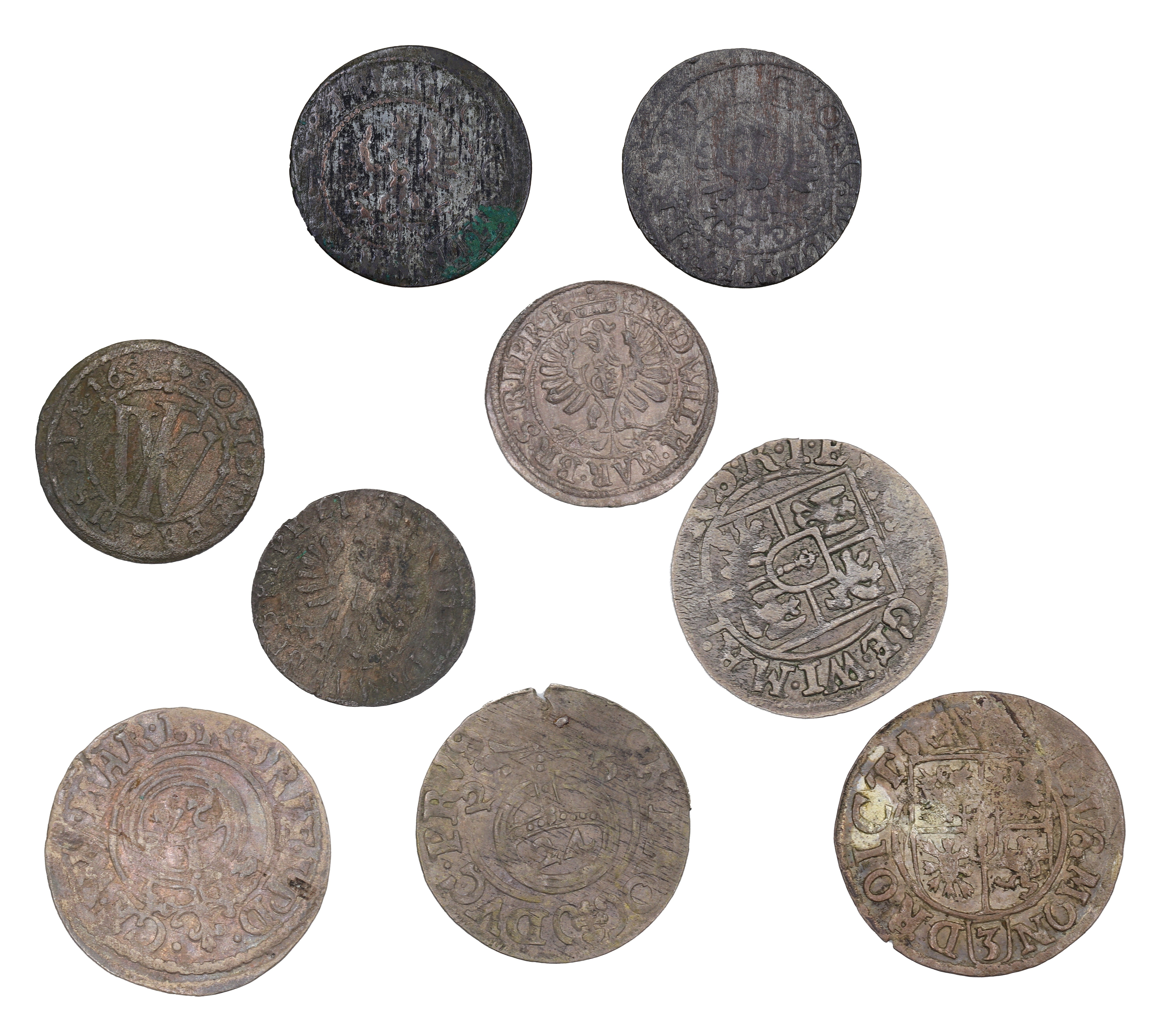 W skład zestawu wchodzą: półtoraki 1622 r., 1623 r., 1625 r., 1626 r. – Jerzy Wilhelm; szeląg 1629 r. (moneta polakierowana), szeląg 1633 r. (rzadszy, ostatni rocznik, Kop. 3886 R) – Jerzy Wilhelm; szeląg 1654 r. (2 szt., Kop. 3982 R1), szeląg 1655 r. (Kop. 3983 R4.) – Fryderyk Wilhelm