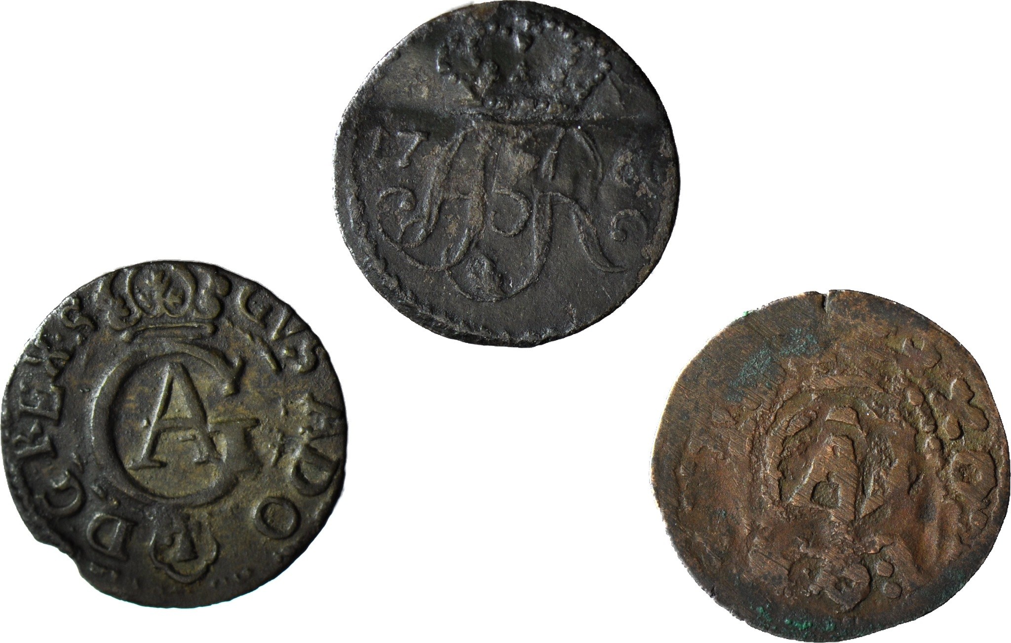 Zestaw August III Sas, Szeląg 1760 Toruń i 2 szelągi Gustawa Adolfa