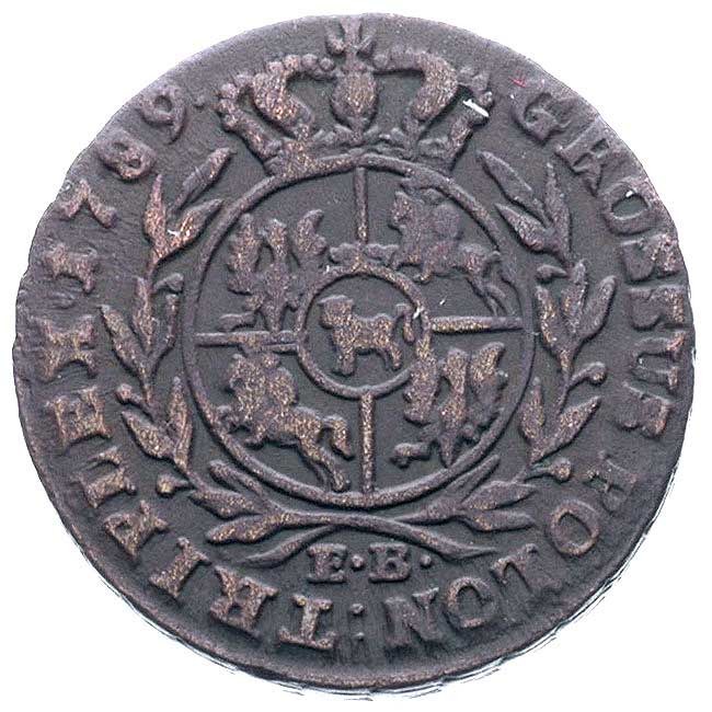 zestaw monet miedzianych, trojak 1789 Warszawa, grosz 1...