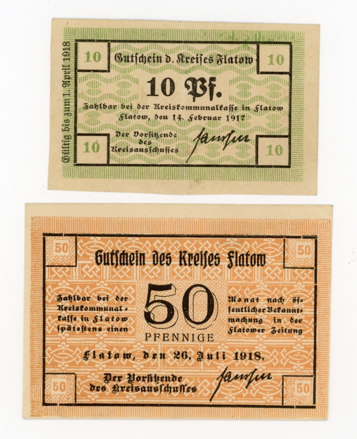 Złotów/Flatow, Kreis, 10 i 50 fenigów 1917/1918 - 10 fen. jest rzadkie