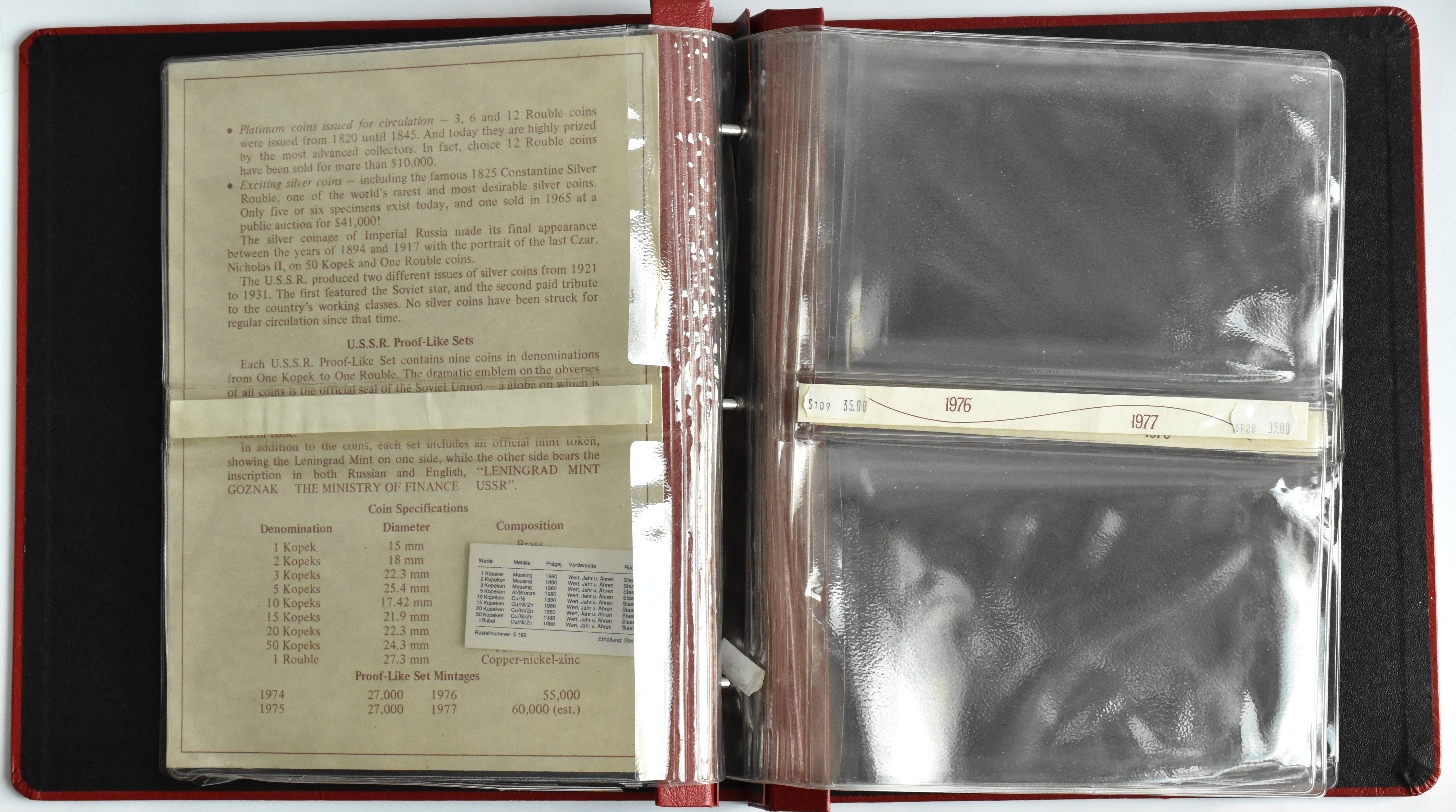 ZSRR, klaser na sety monet 1974-1980