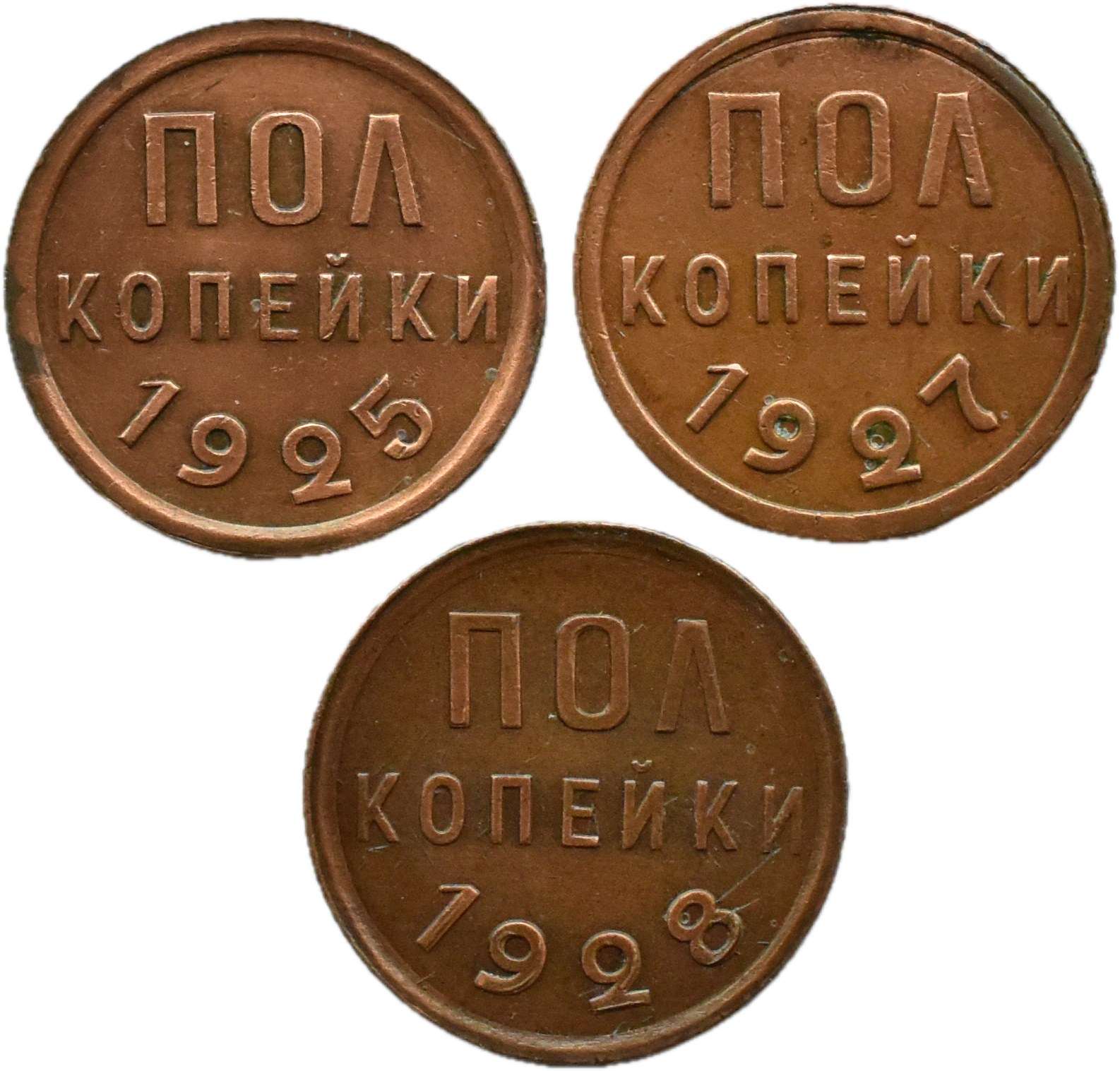 ZSRR, KOMPLET 1/2 kopiejki 1925-1928, mennica Leningrad