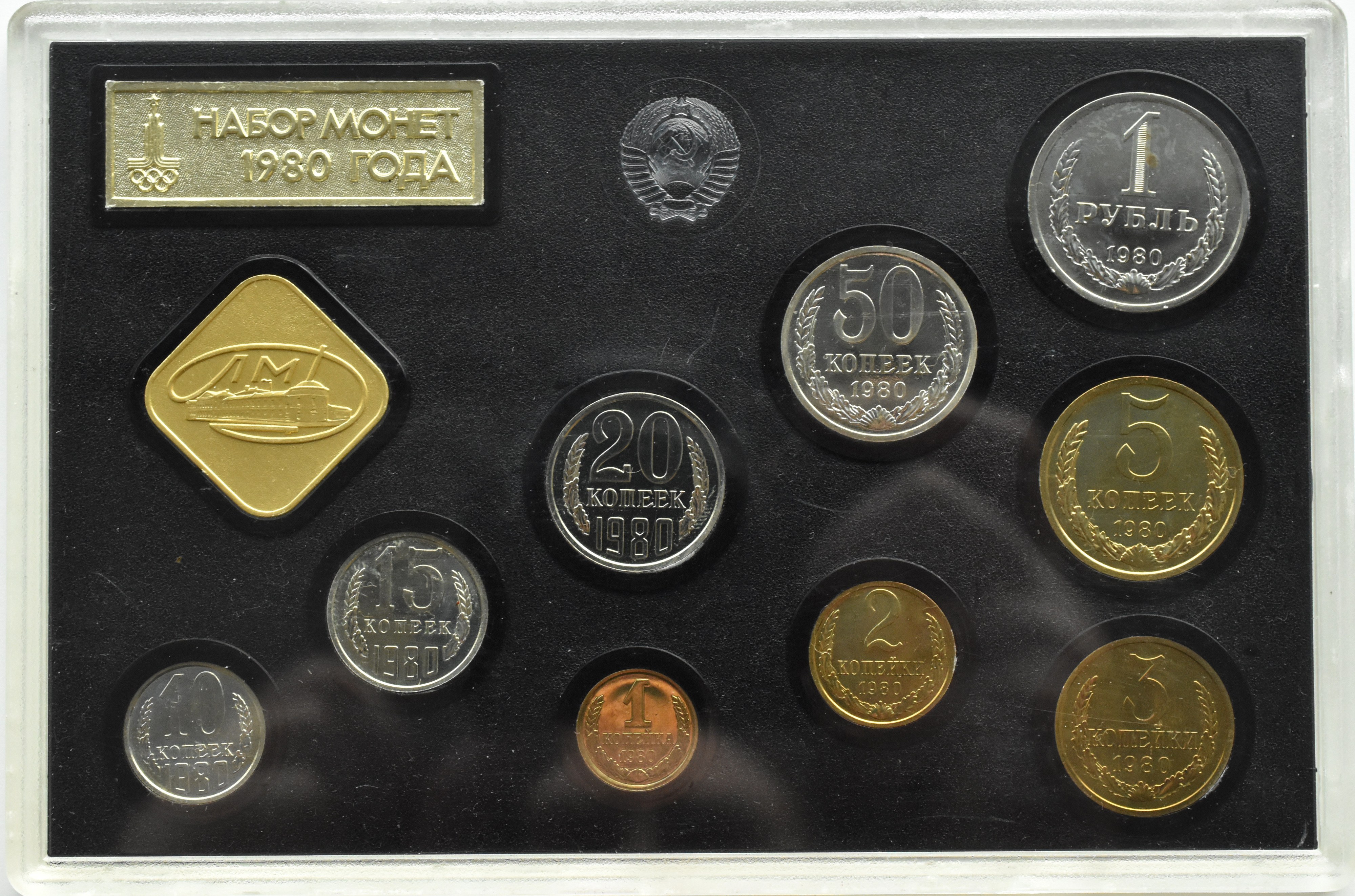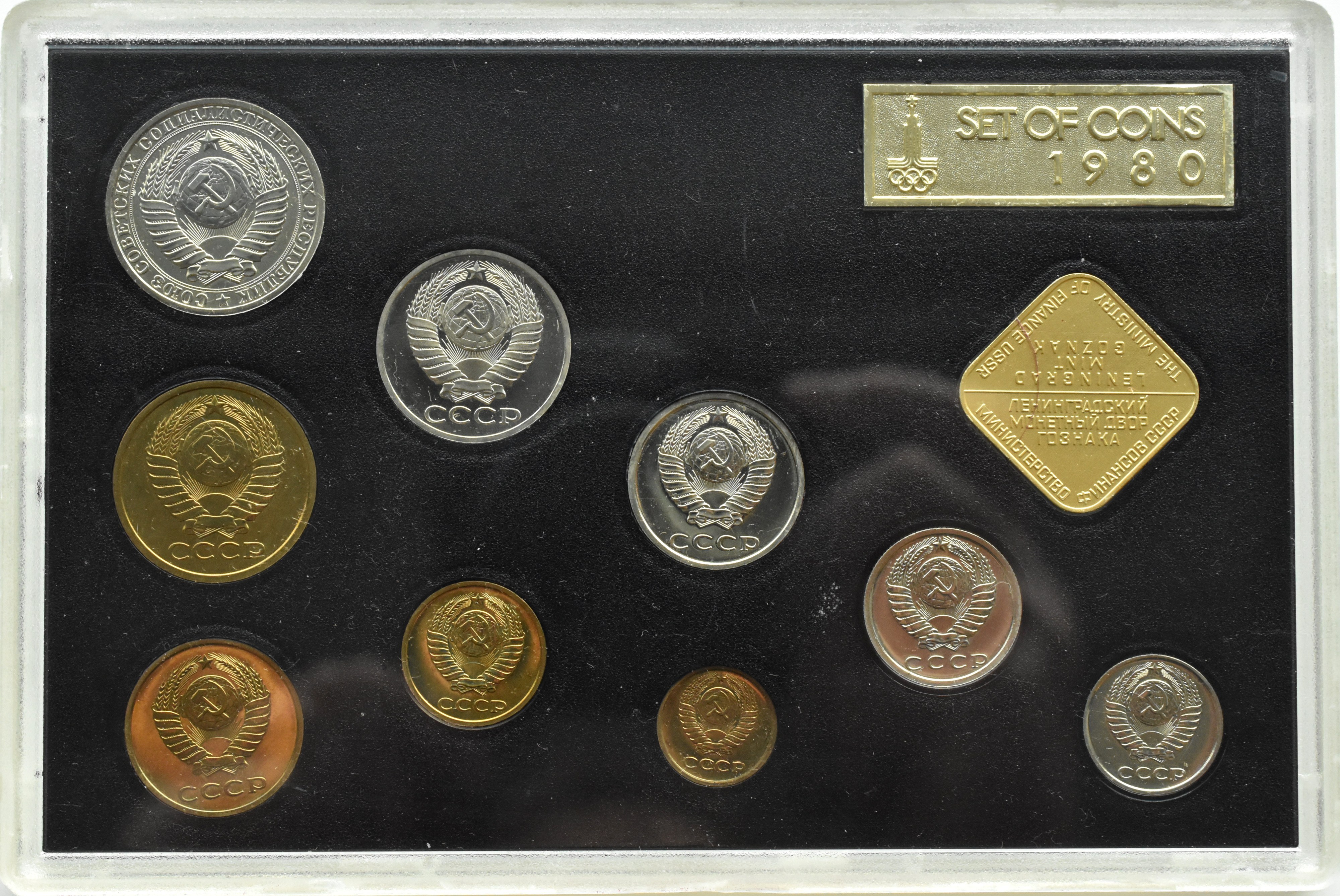 ZSRR, set monet 9 szt 1980 i medal w oryginalnym plastykowym etui, mennica Leningrad