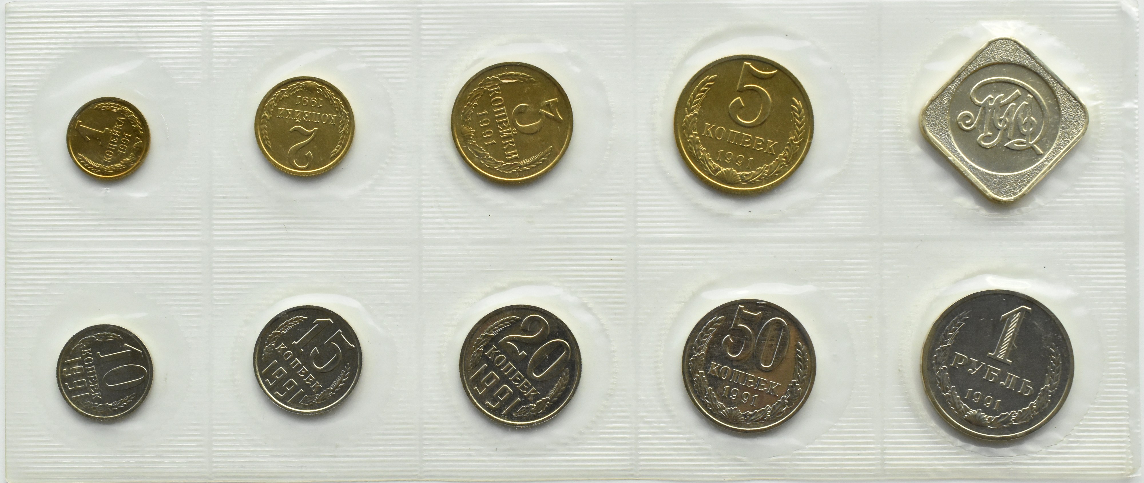 ZSRR, set monet 9 szt 1991 w folii, mennica Leningrad