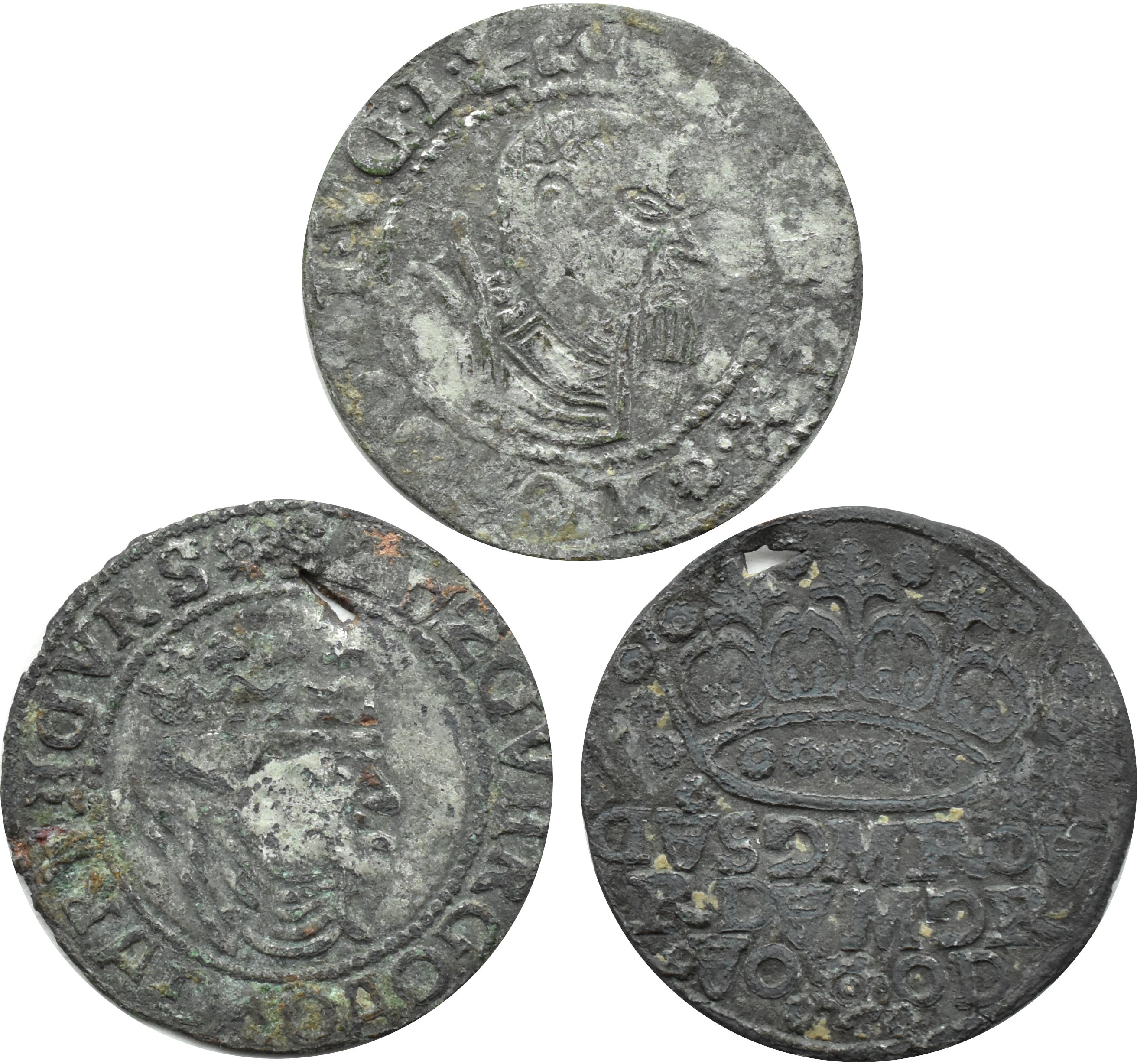 miedź srebrzona, waga 1,74, 2,12, 2,85 grama, średnice 23-24 mm
