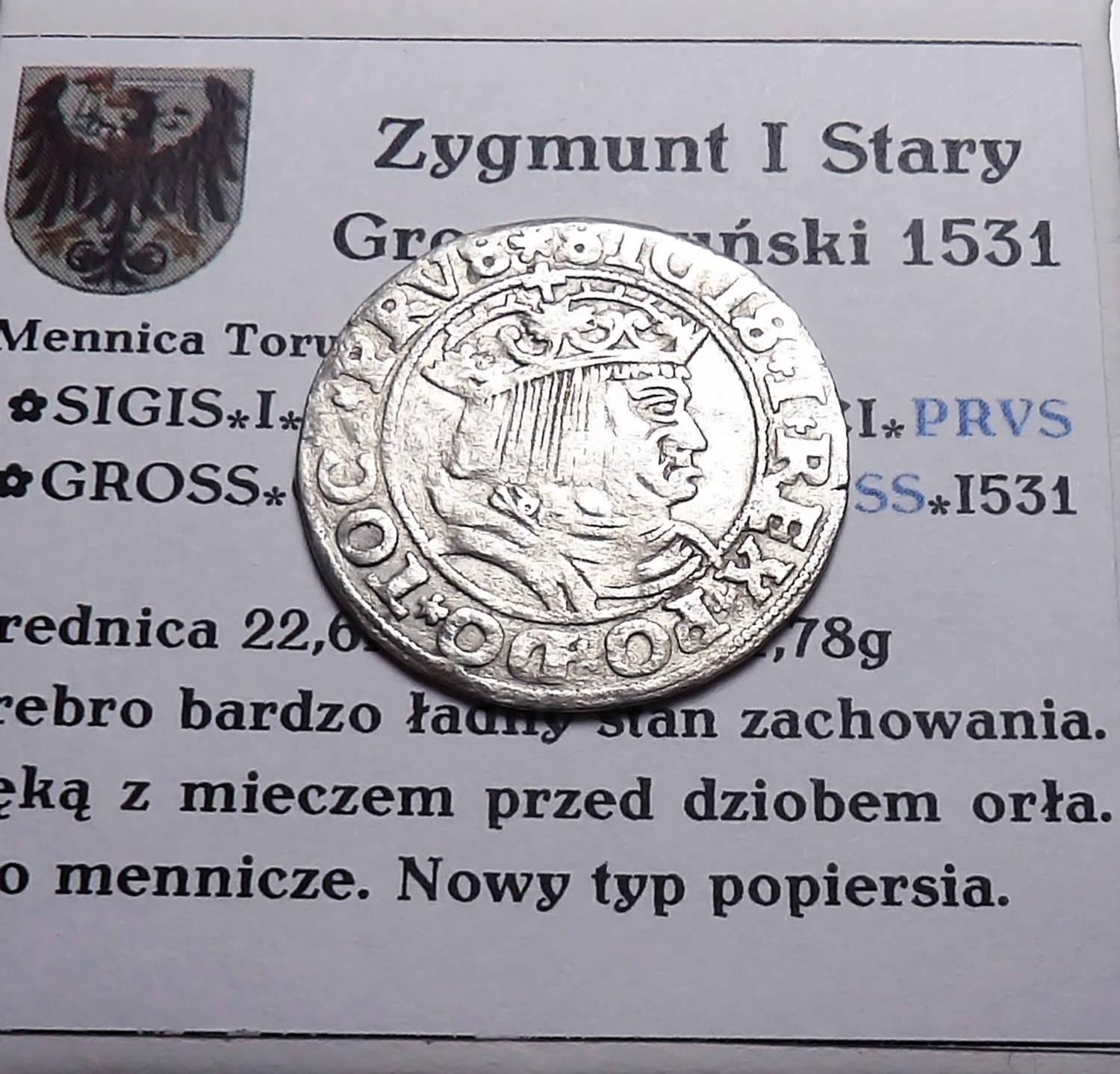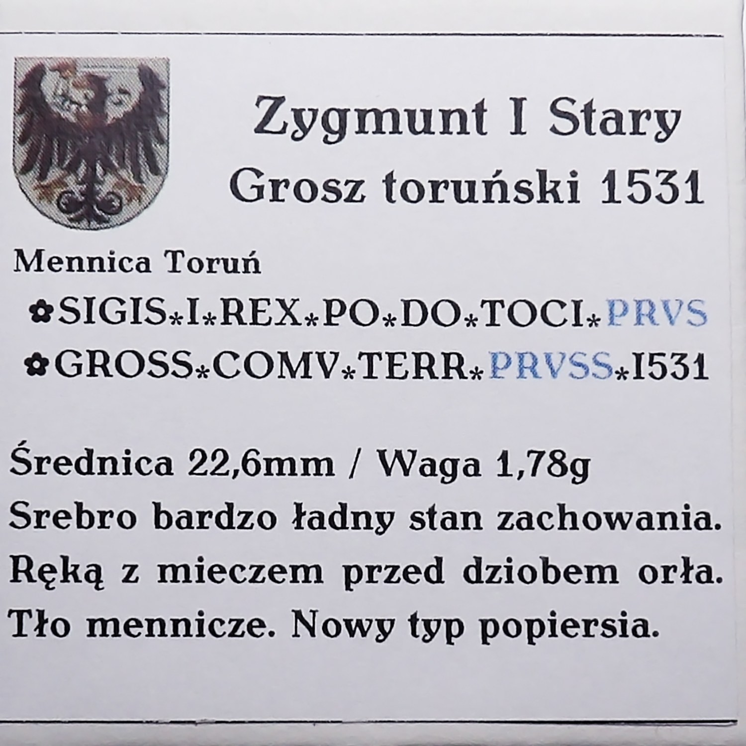 Jagiellonowie, Zygmunt I Stary (1506-1548), grosz wybity w 1531 roku, mennica Toruń