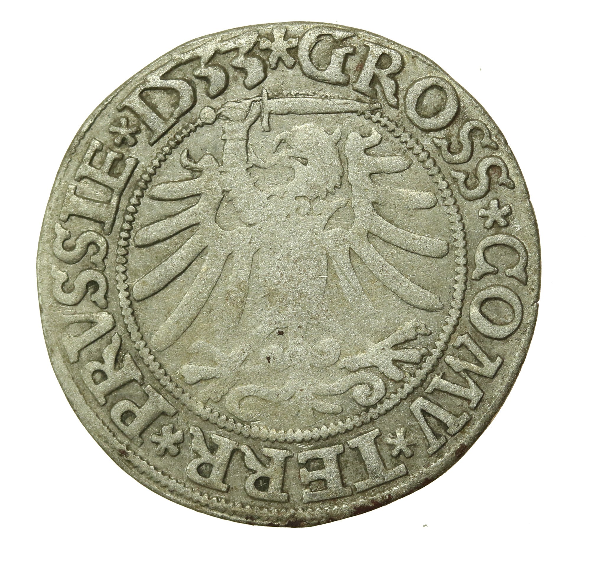 Zygmunt I Stary, grosz 1533, Toruń PRUSS/PRUSSIE. Odmiana legendowa PRVSS / PRVSSIE. Stan 2-. Dobrze zachowana moneta z połyskiem i patyną. Literatura: Kopicki 3088