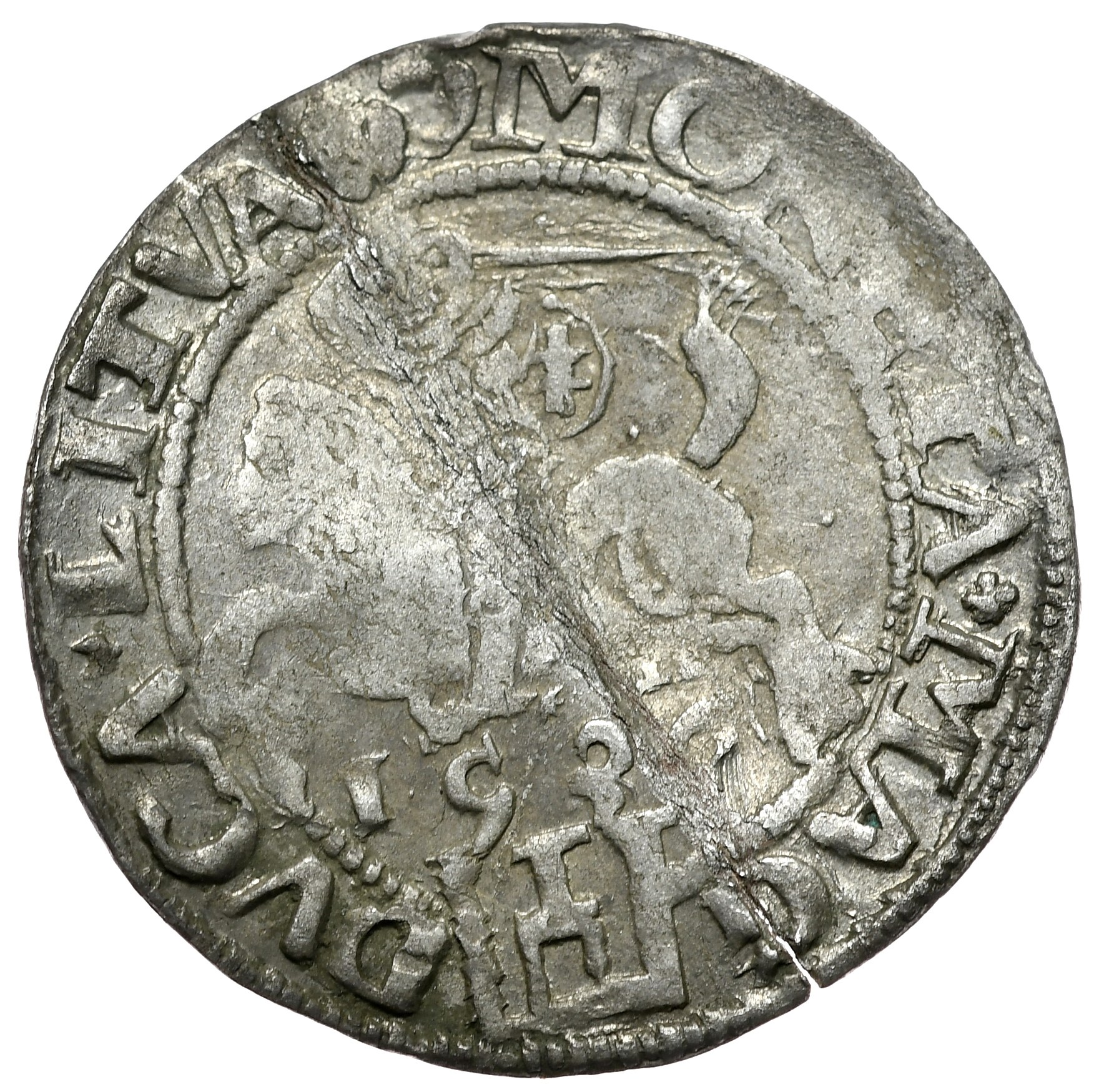 Sporej rzadkości grosz z końcówką legend LITV/LITVA i zapis imienia króla SIGISMVN.
