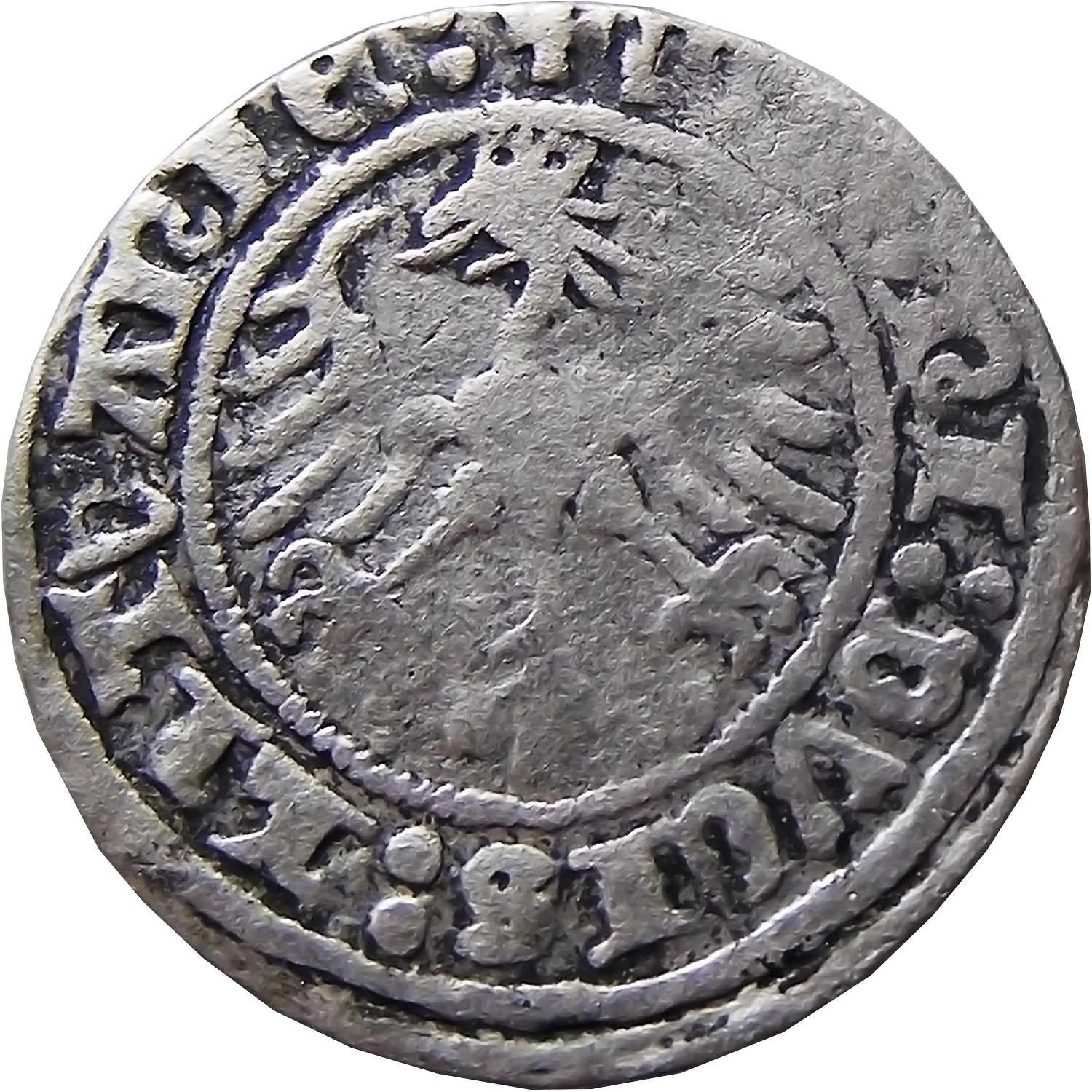 Półgrosz wybity w Wilnie dla Zygmunta I Starego w 1514 roku. Pojedyncza kropka kończy legendę awersu. Niedobicie?