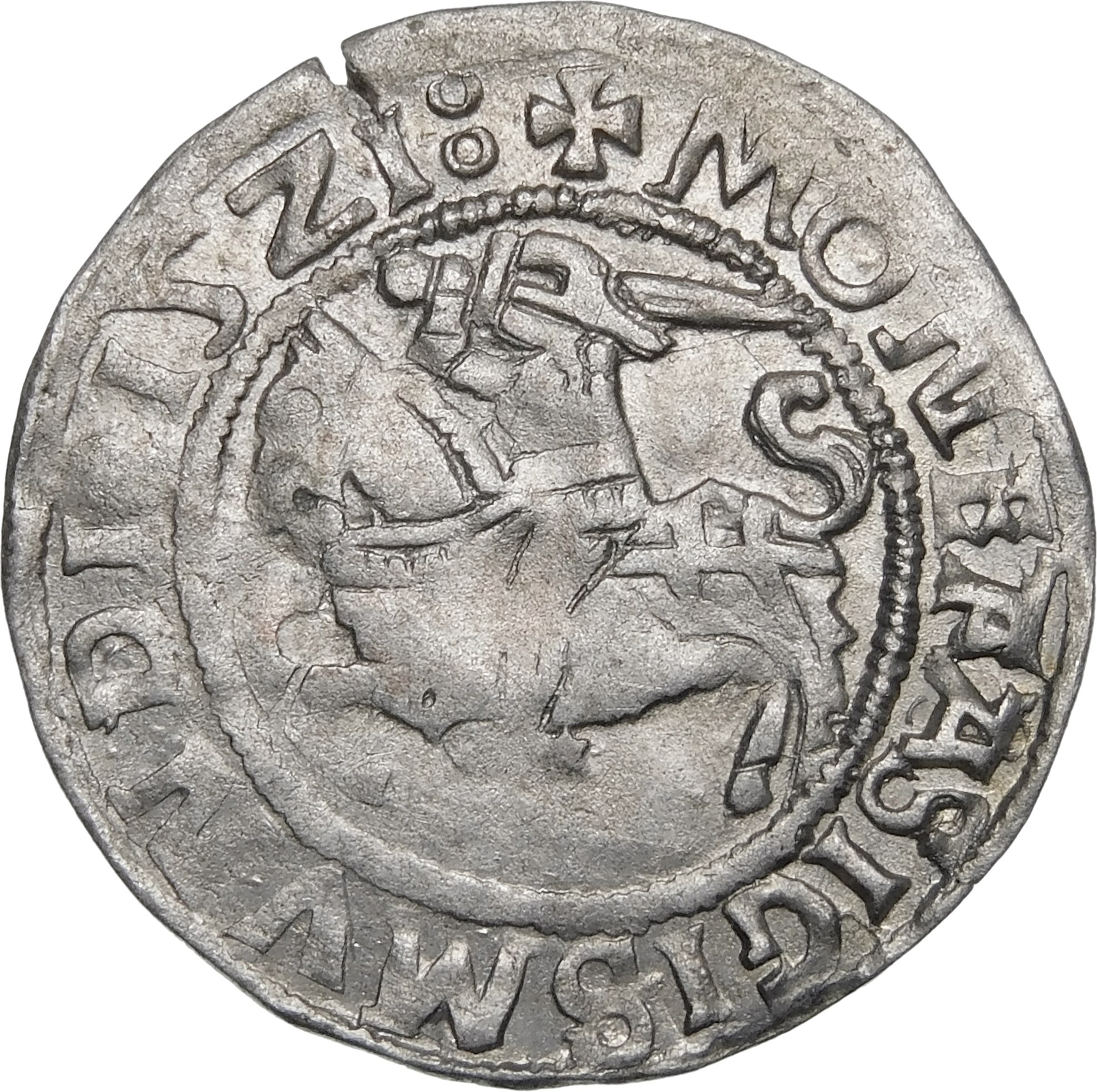 Zygmunt I Stary, Półgrosz 1521, Wilno – czterokropek – przebitka MONET/AA/: – b. rzadki