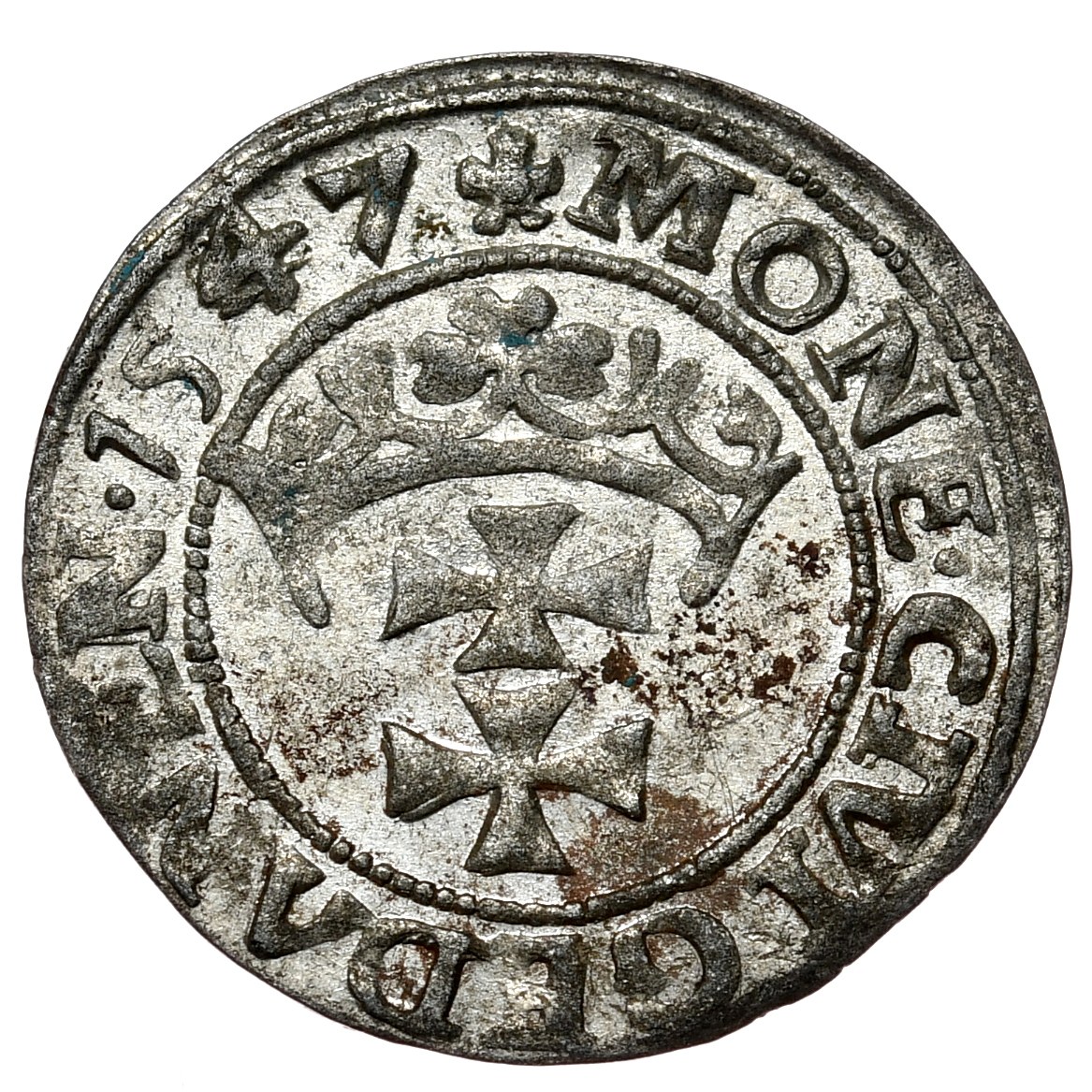 Odmiana z końcem legendy awersu POLON i rewersu GEDANEN.