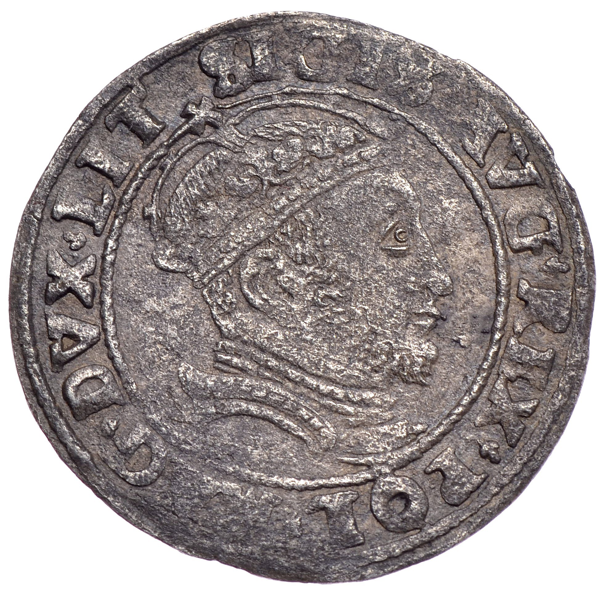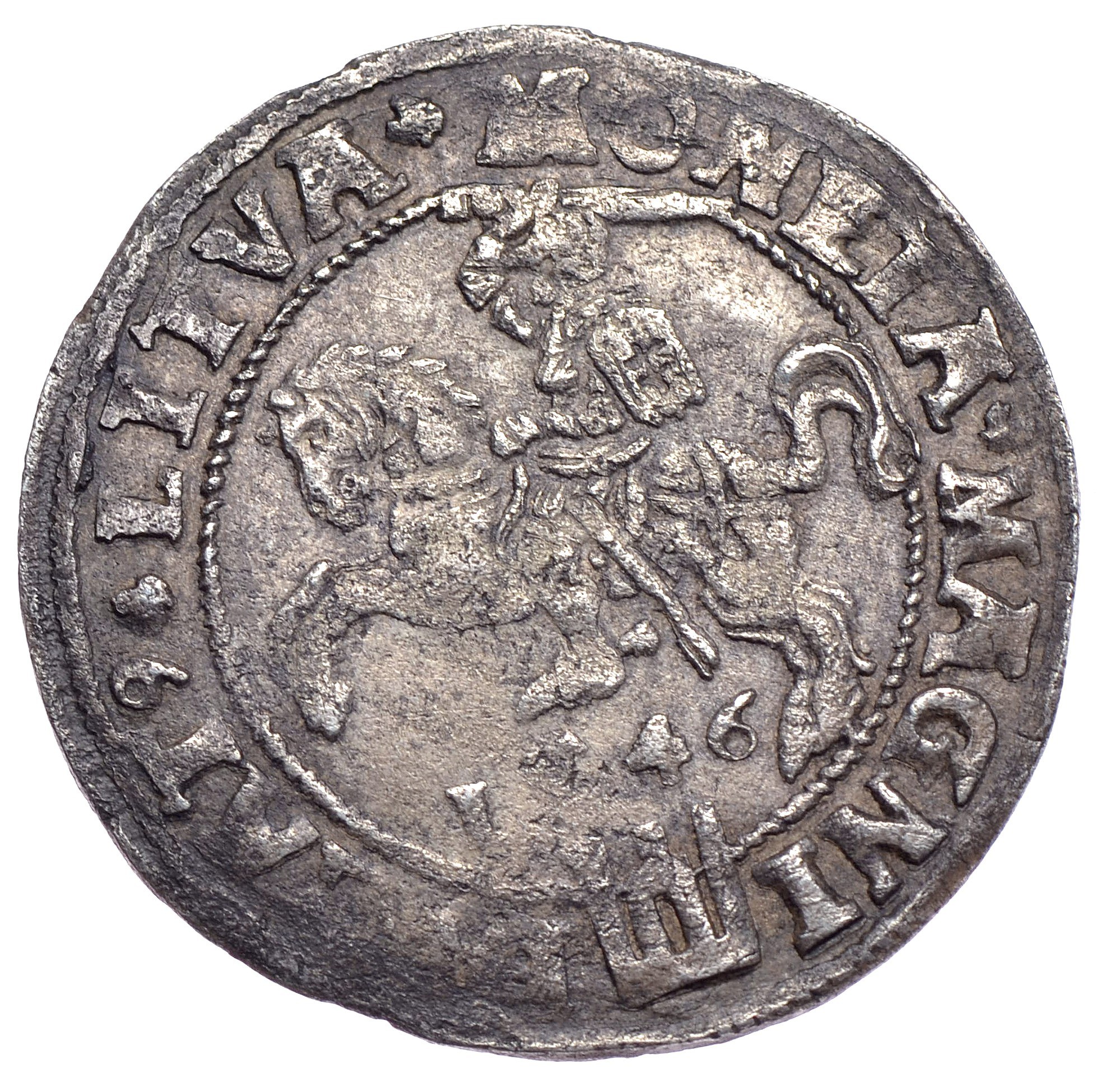 Końcówki napisów LIT/LITVA, dość dobra jakość bicia, ciemna patyna i mennicze wady blachy.