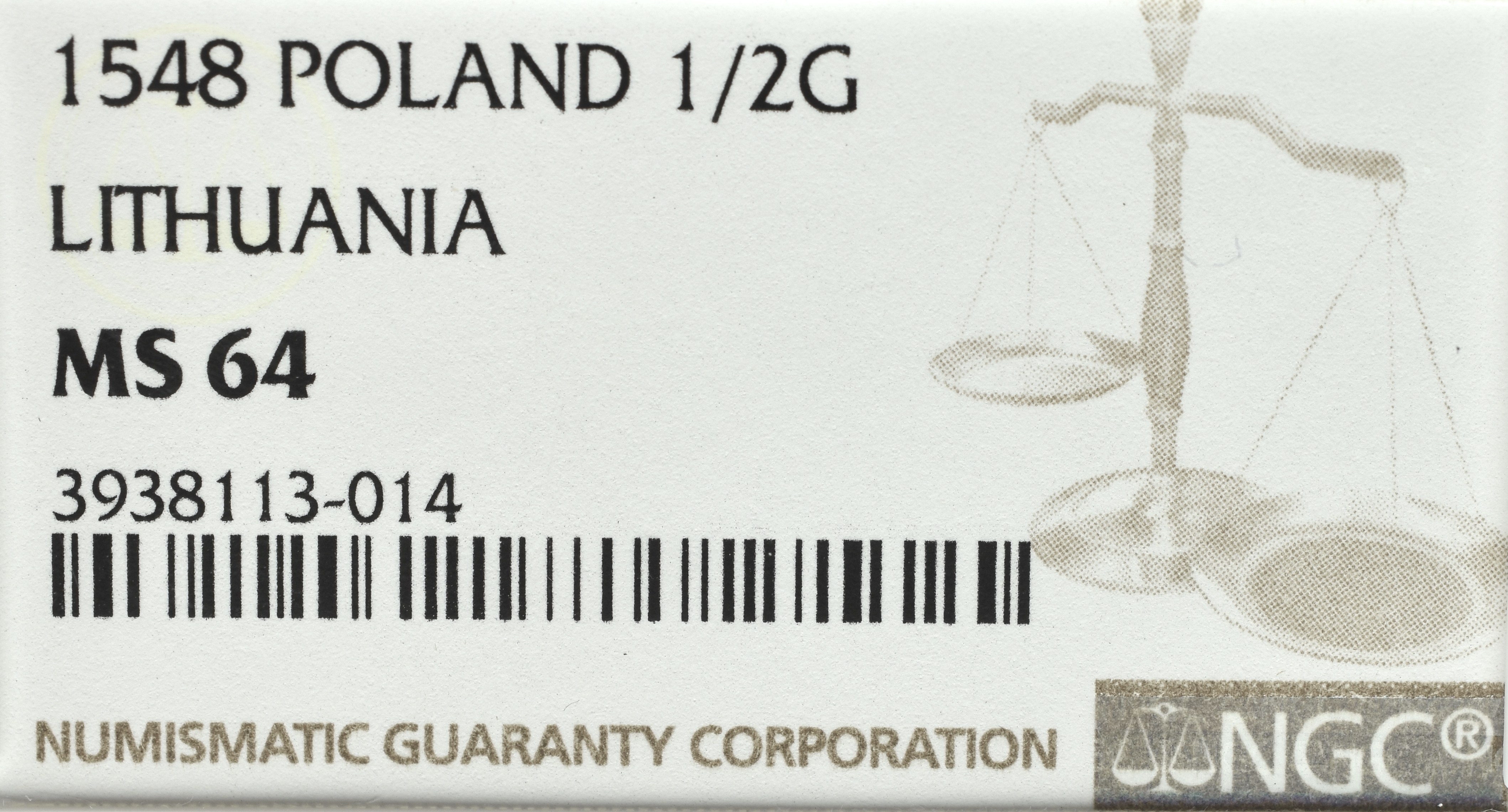 Zygmunt II August, Półgrosz 1548, Wilno - NGC MS64