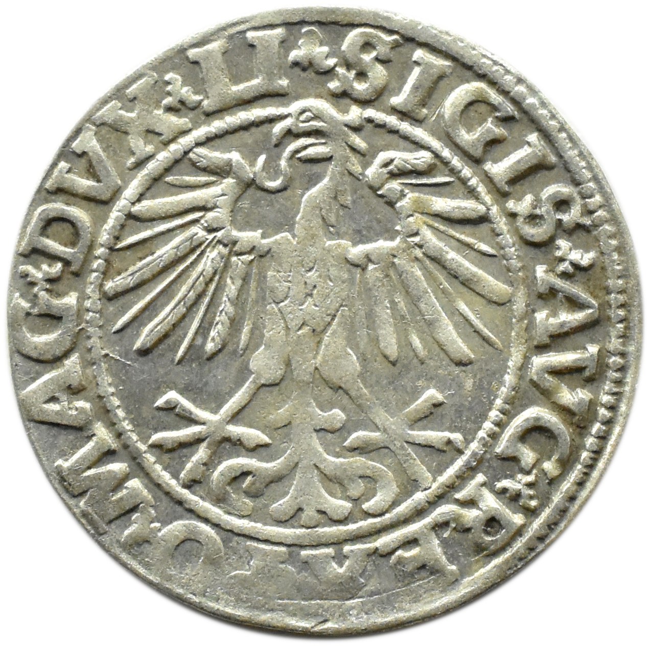 Moneta wybita w Wilnie dla Zygmunta Augusta w 1551 roku, końcówka napisów LITVA/LI, ciekawszy rzadszy rocznik