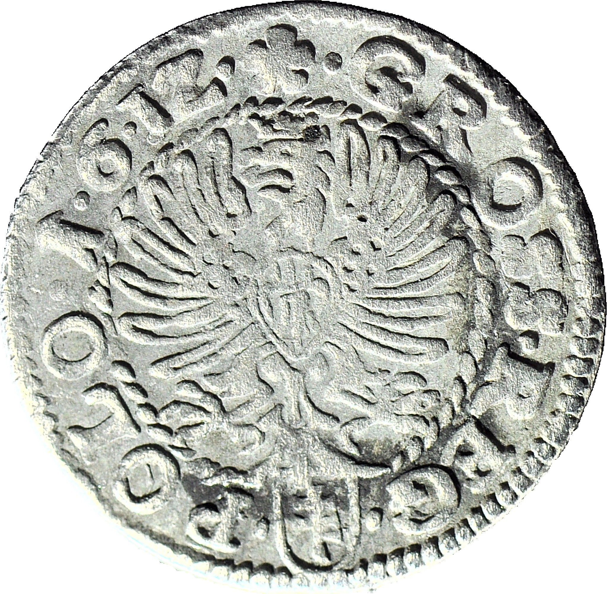 Data rozdzielona kropkami 1•6•IZ• Moneta z ciemną patyną.