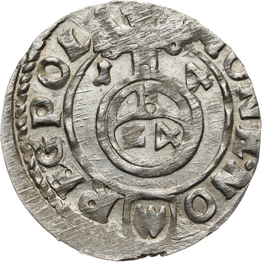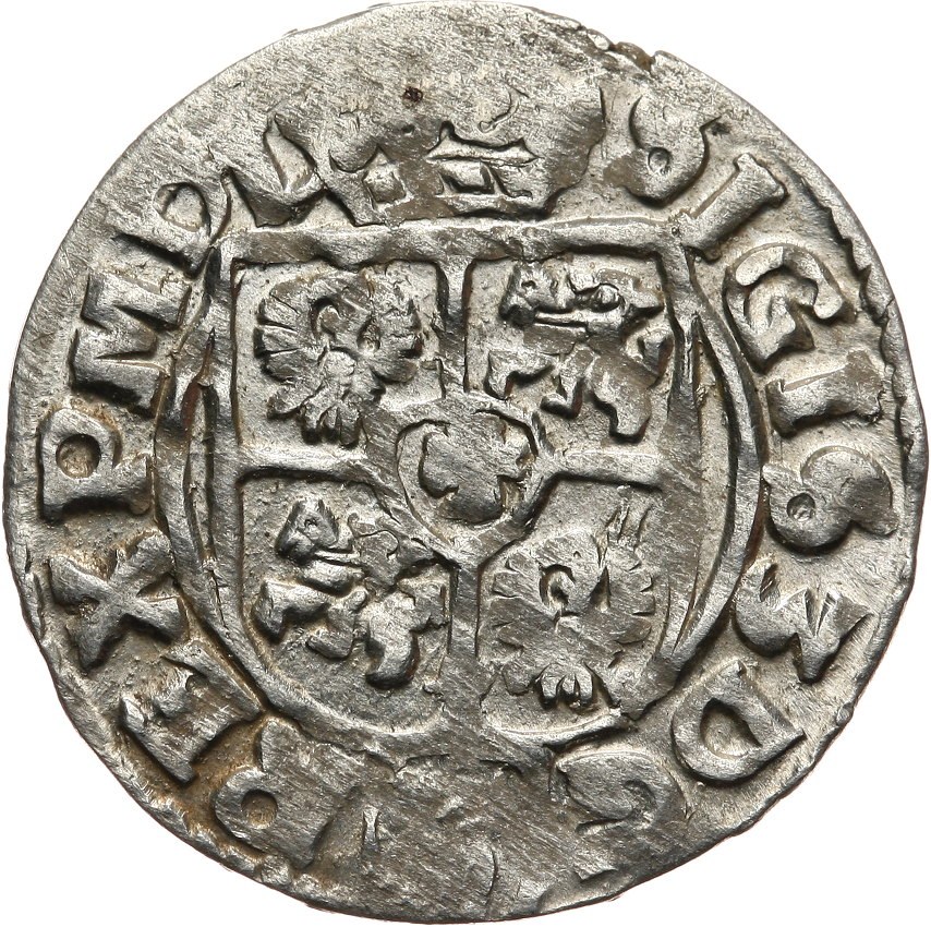 Ciekawszy wariant rewers bez ozdobników i legenda z POL, awers z zapisem imienia króla SIGIS.