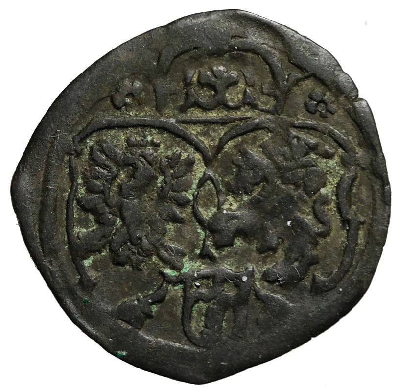 Wariant z rozetkami przy koronie po obu stronach monety. Dobrze wybity egzemplarz ze starą patyną.