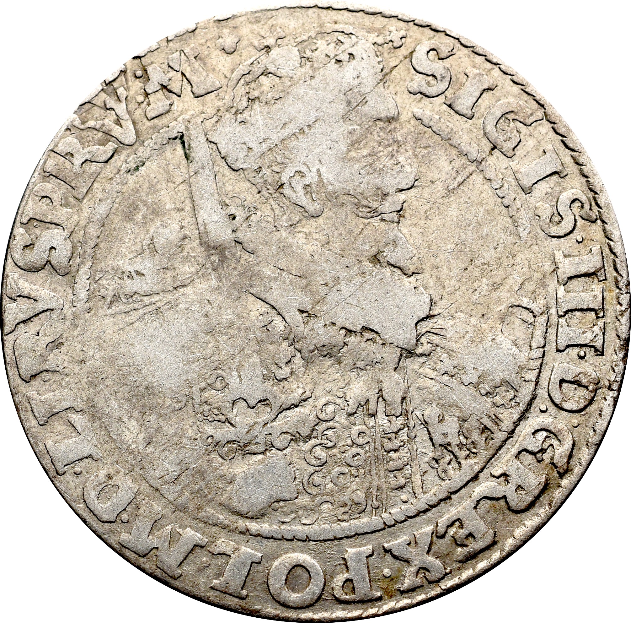 Mocno obiegowy egzemplarz rzadkiej odmiany orta z 1622 roku.