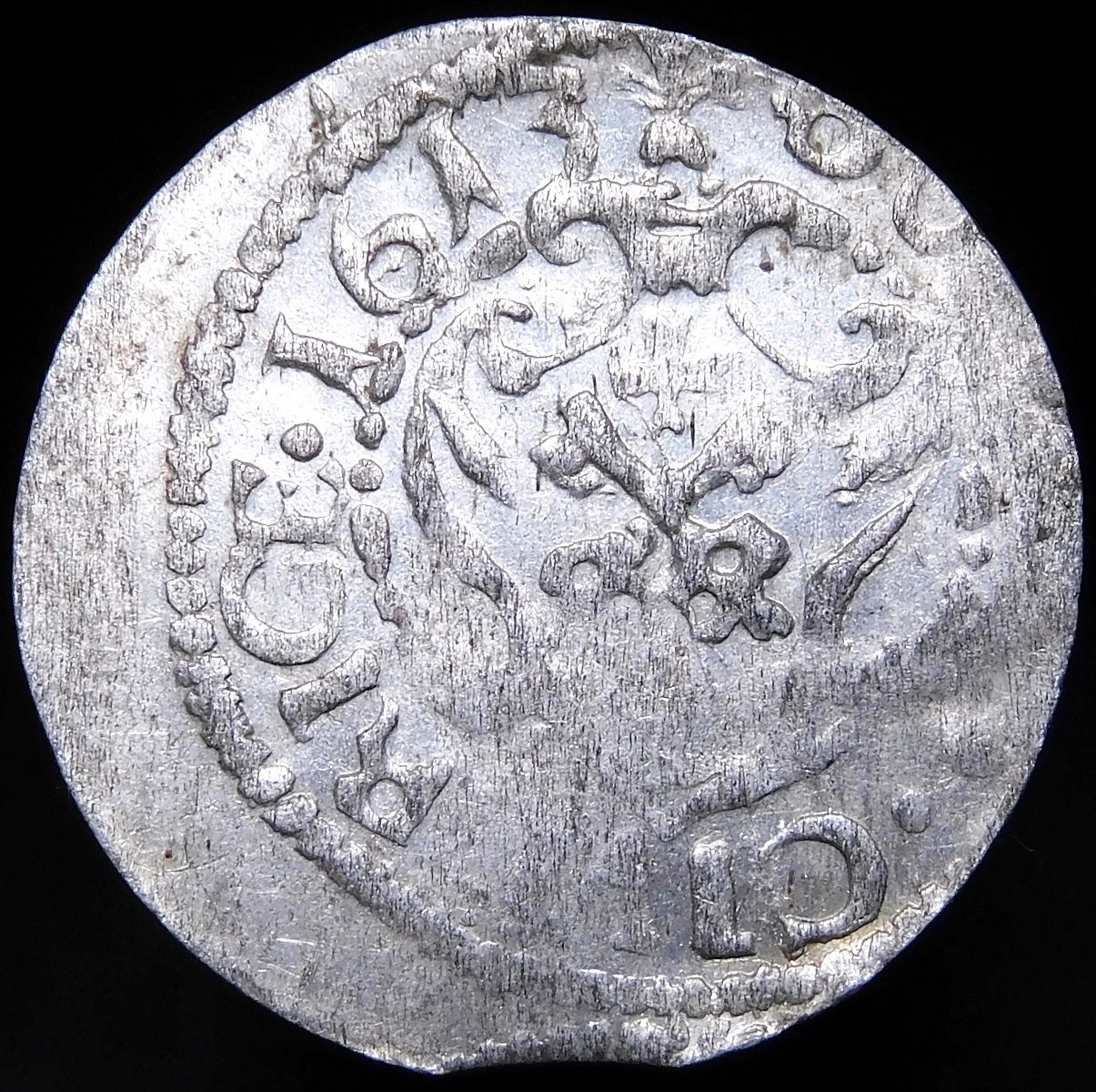 Zygmunt III Waza, Szeląg 1613, Ryga – Snopek w otoku – b. rzadki