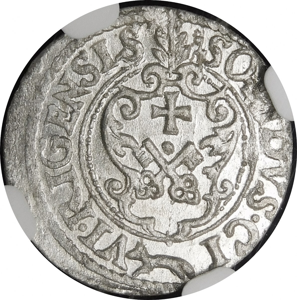 Liszka (znak mincerski Ottona von Meppena – burmistrza Rygi) w lewo dzieli
