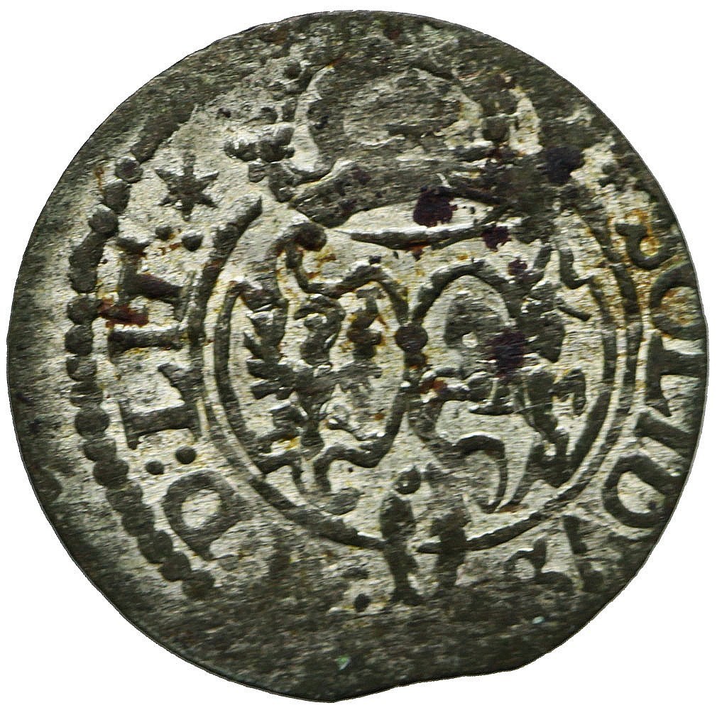 Wczesny typ dla tego rocznika z monogramem i tarczami herbowymi. Lustro mennicze w tle.