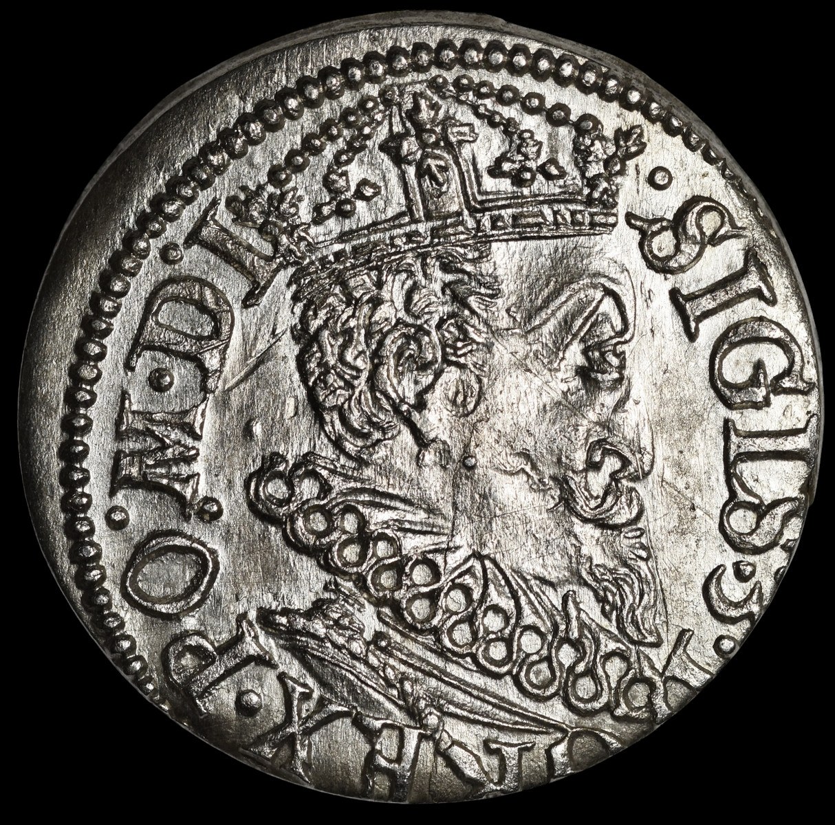 Odmiana napisowa z tytulaturą króla SIGIS 3 … PO M D L w otoku na awersie oraz