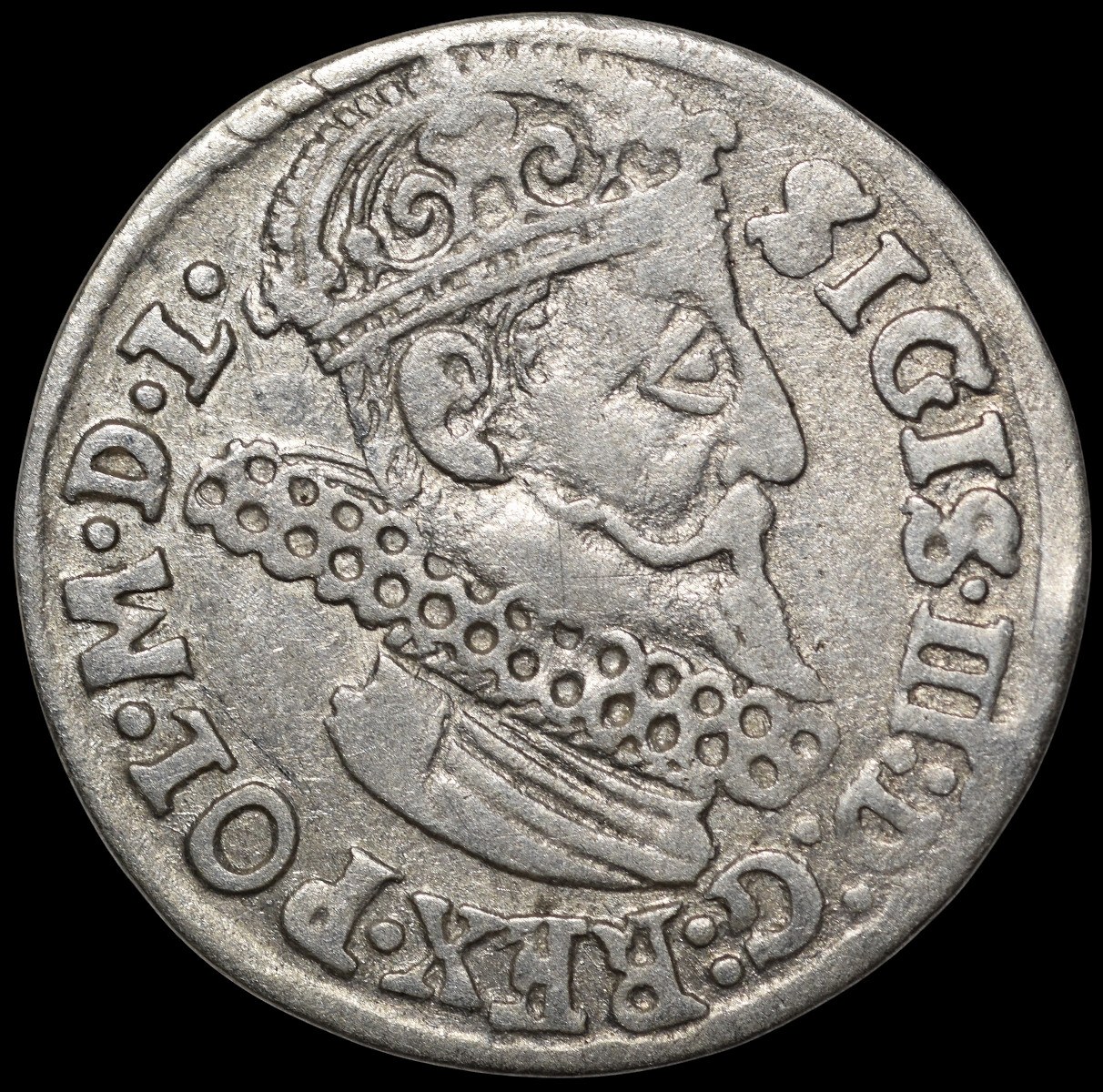 Portret króla z głową zwróconą w prawo.