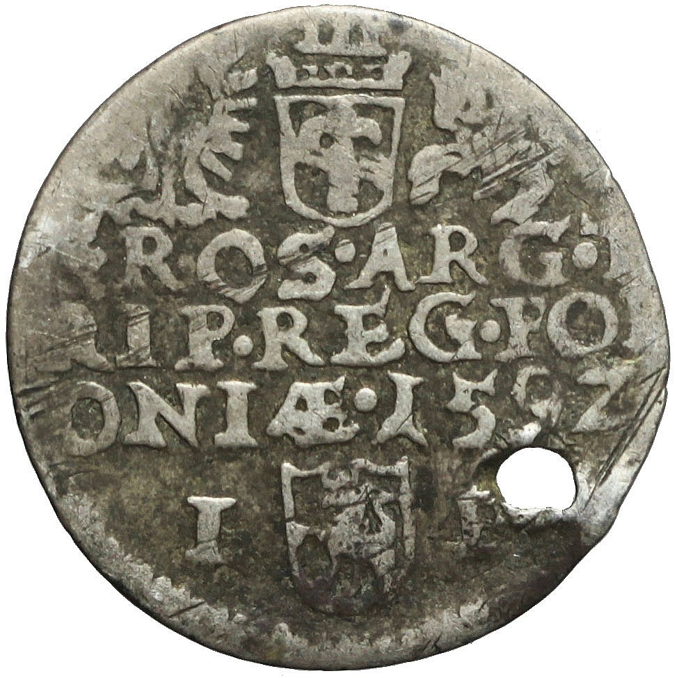 Zygmunt III Waza, Trojak Olkusz 1592, duża głowa i pełna data w wierszu