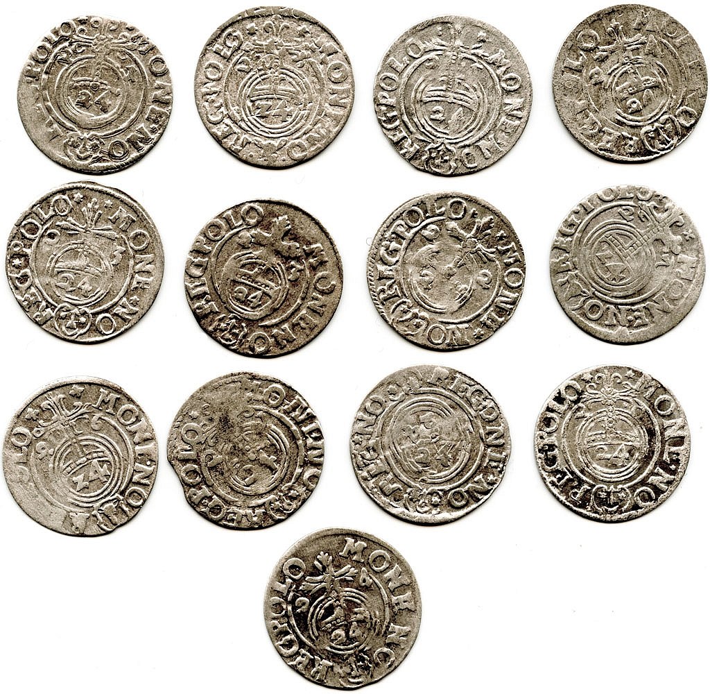 Typowe monety z obiegu. Jeden półtorak ciekawszy podwójnie uderzony obróconym stemplem.