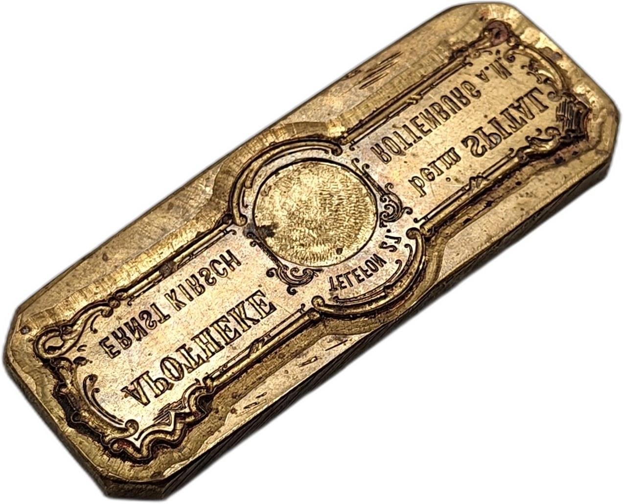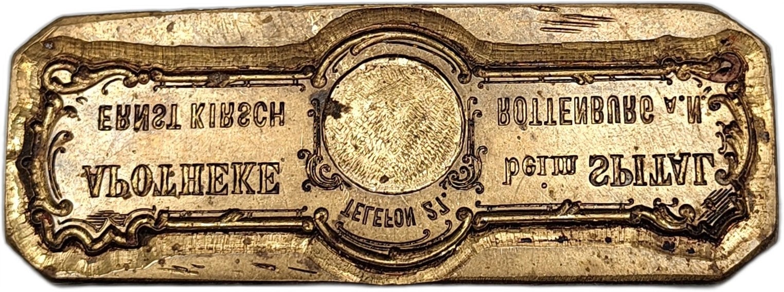Matryca drukarska / tłok drukarski / pieczęć - Apteka szpitalna Ernesta Kirscha w Rottenburgu (Ernst Kirsch Apotheke) - [ drukarstwo, księgarstwo, introligatorstwo]