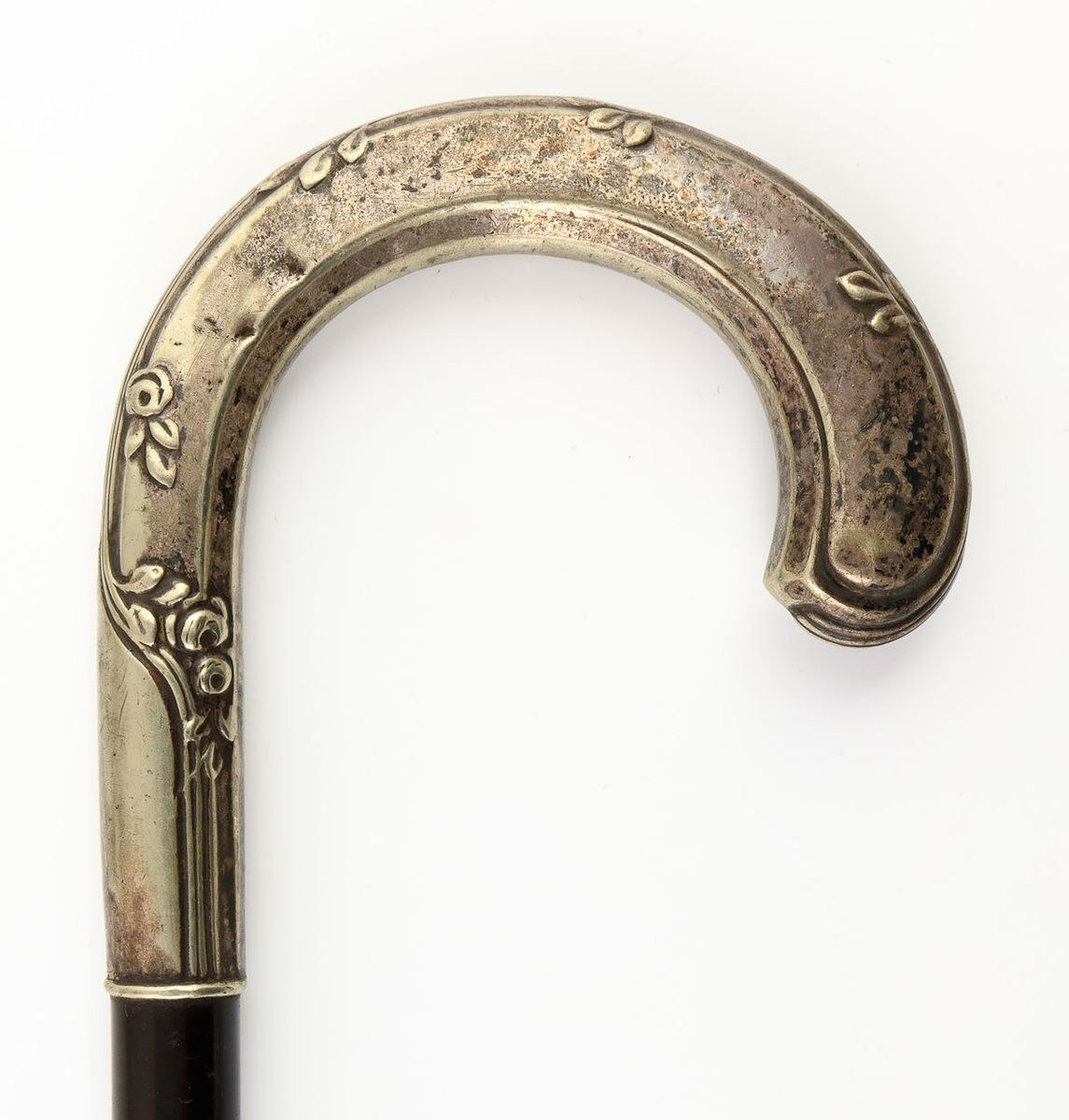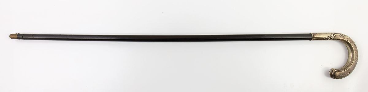 Drewno toczone czernione, rączka plater na nowym srebrze, dł.87,5 cm